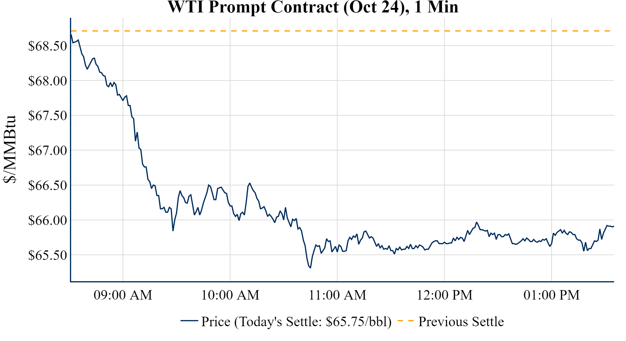 Prompt-Month WTI (Oct 24) was down $-2.96 on the day, to settle at $65.75