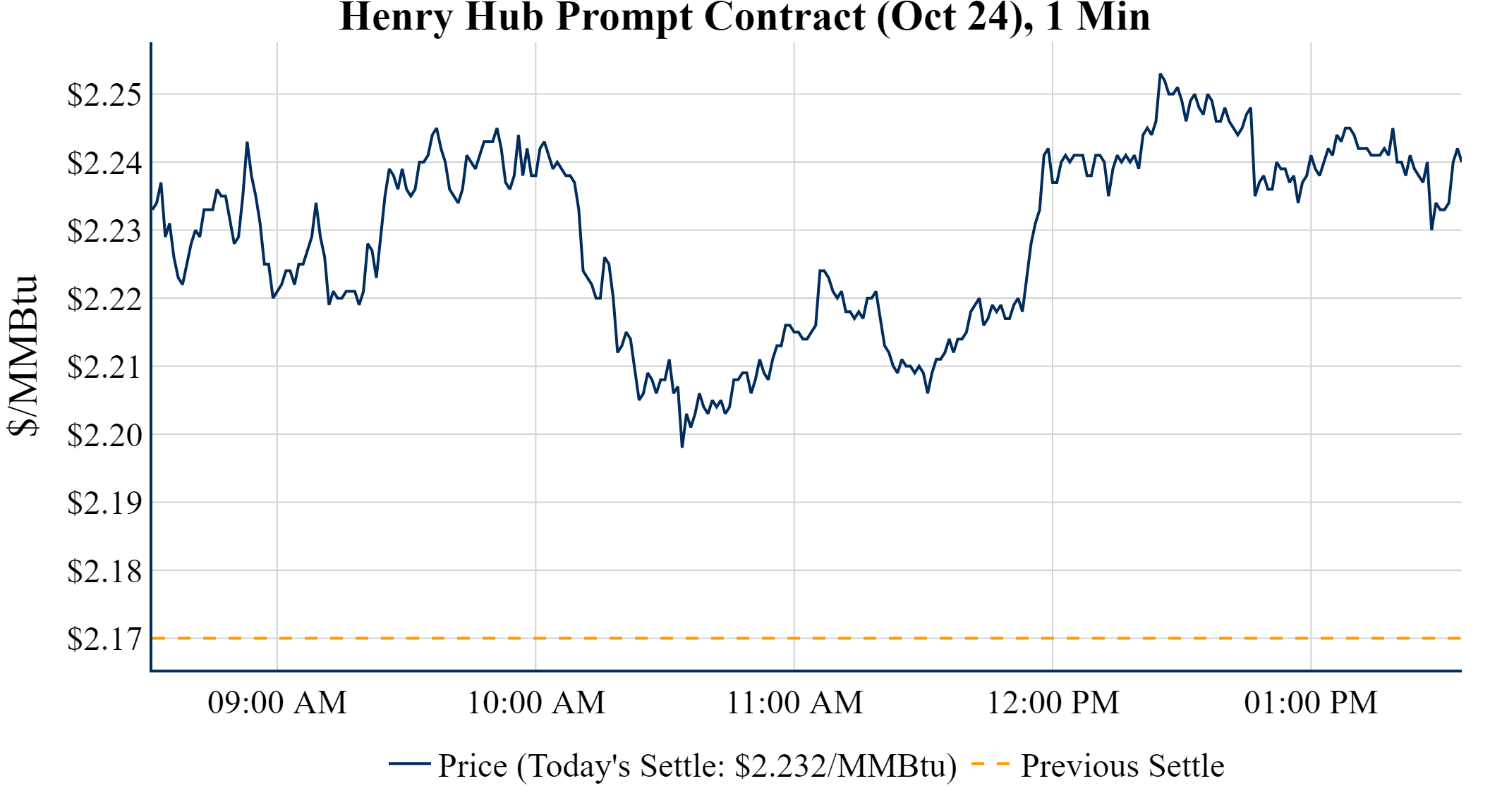 Prompt-Month Henry Hub (Oct 24) was up $0.062 on the day, to settle at $2.232