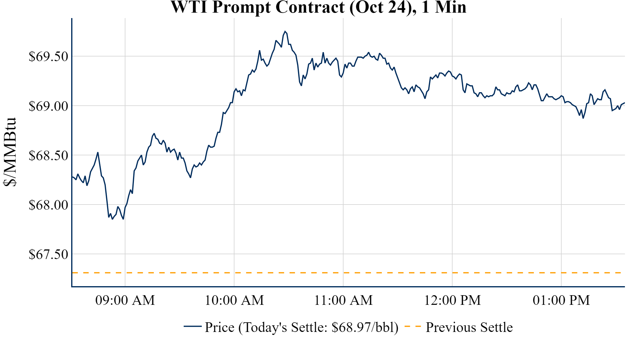 Prompt-Month WTI (Oct 24) was up $1.66 on the day, to settle at $68.97