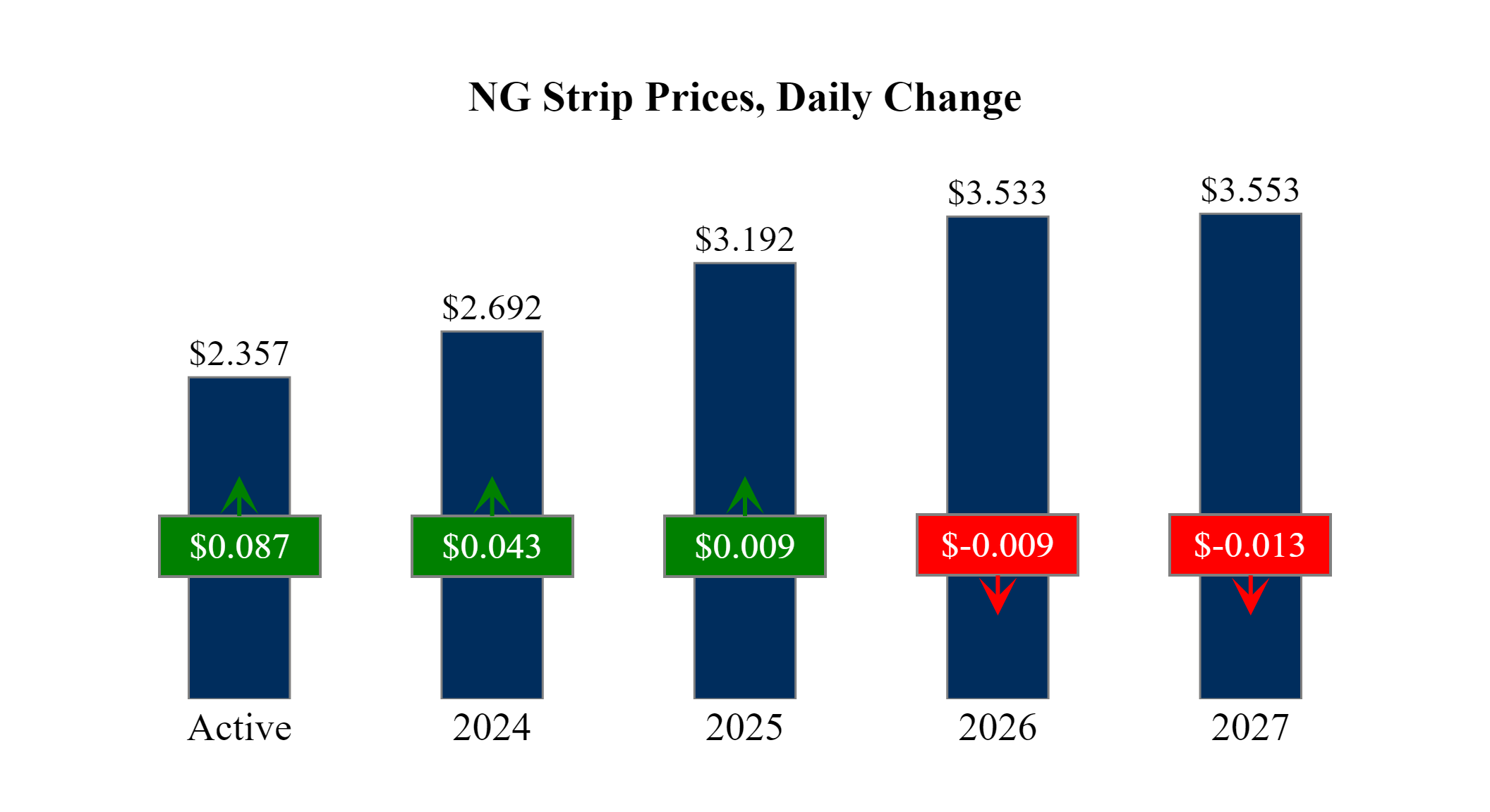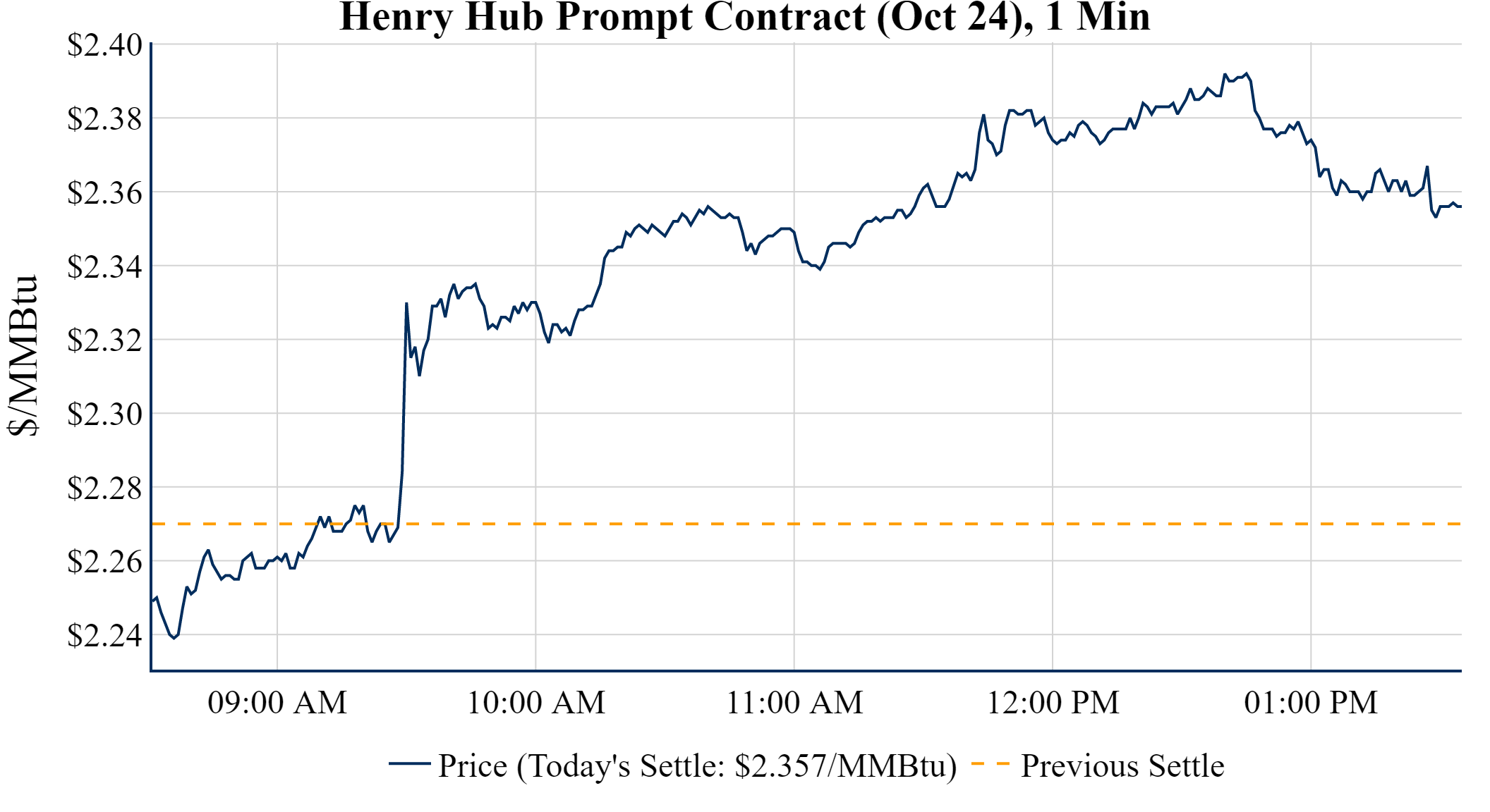 Prompt-Month Henry Hub (Oct 24) was up $0.087 on the day, to settle at $2.357