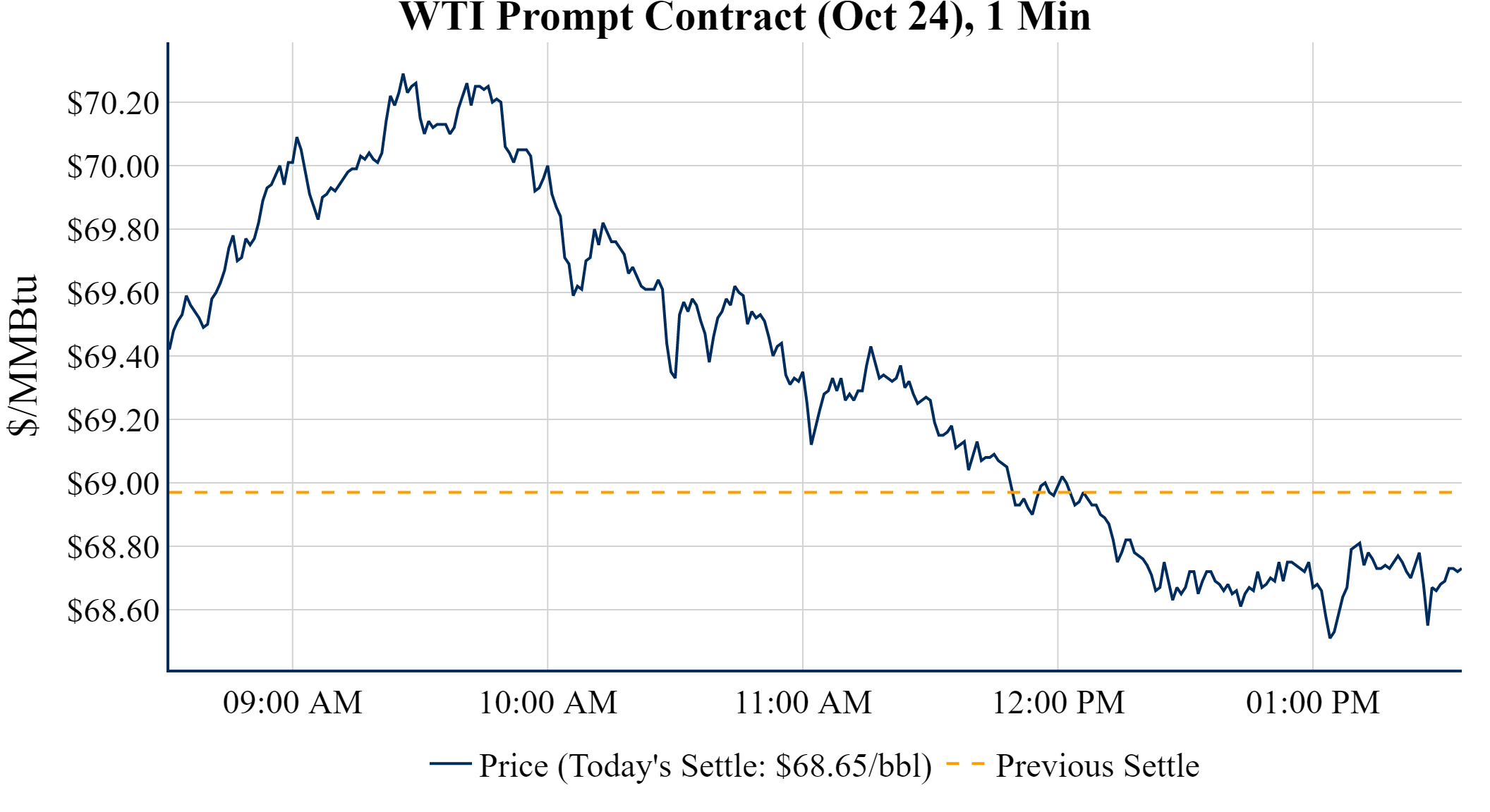 Prompt-Month WTI (Oct 24) was down $-0.32 on the day, to settle at $68.65
