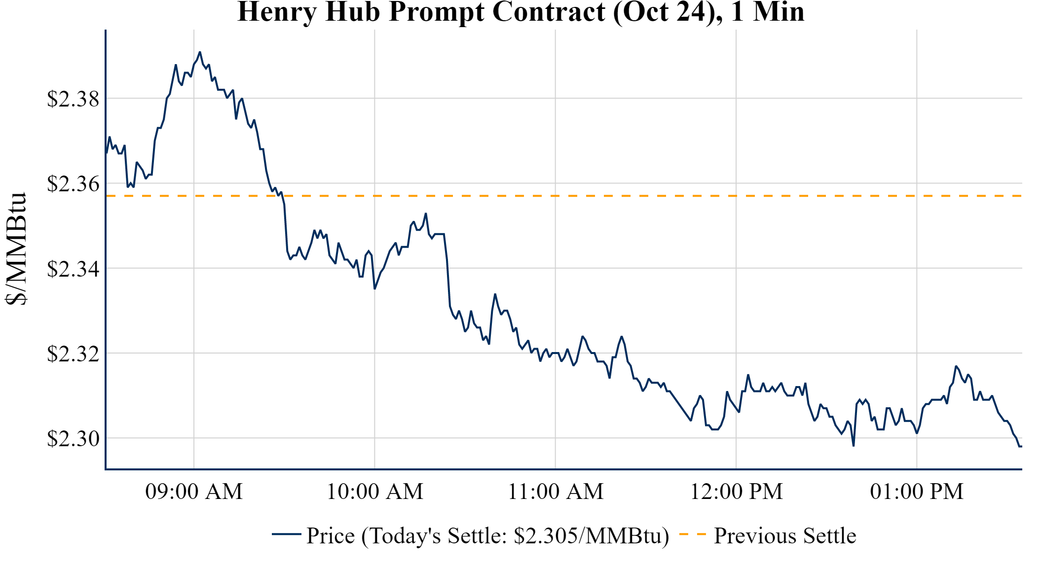 Prompt-Month Henry Hub (Oct 24) was down $-0.052 on the day, to settle at $2.305
