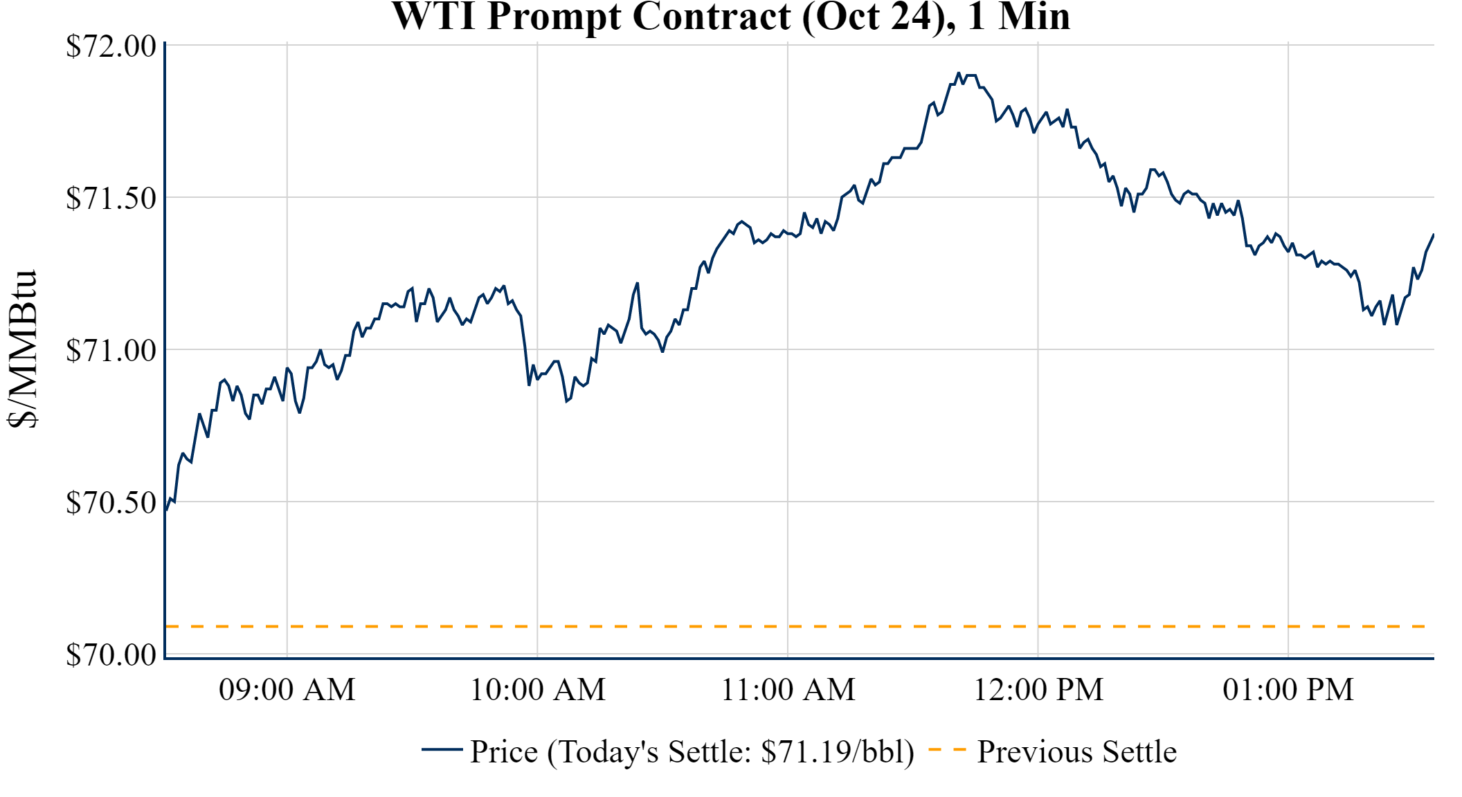Prompt-Month WTI (Oct 24) was up $1.10 on the day, to settle at $71.19