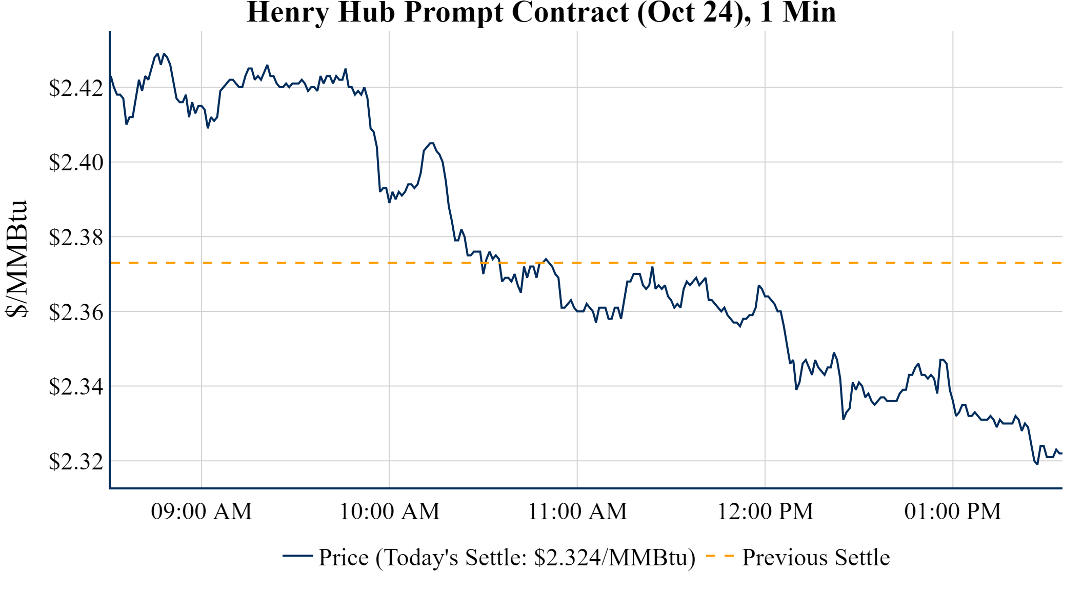 Prompt-Month Henry Hub (Oct 24) was down $-0.049 on the day, to settle at $2.324