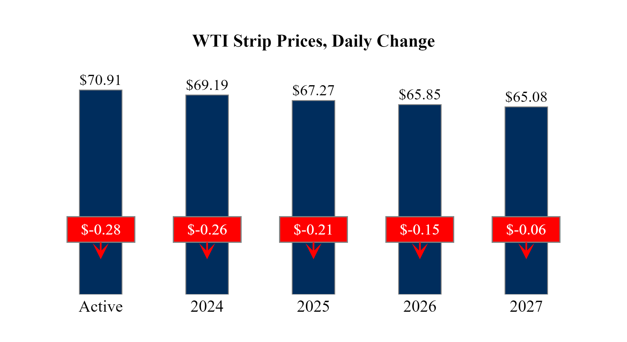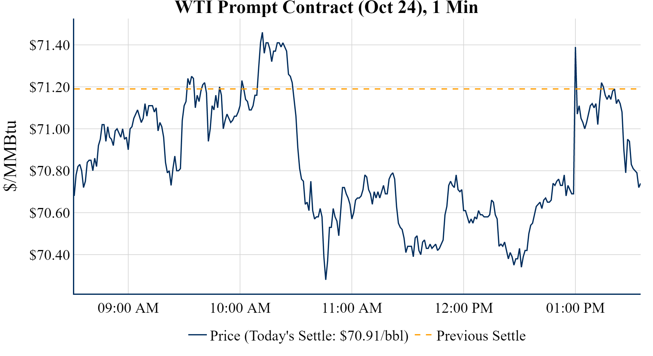 Prompt-Month WTI (Oct 24) was down $-0.28 on the day, to settle at $70.91