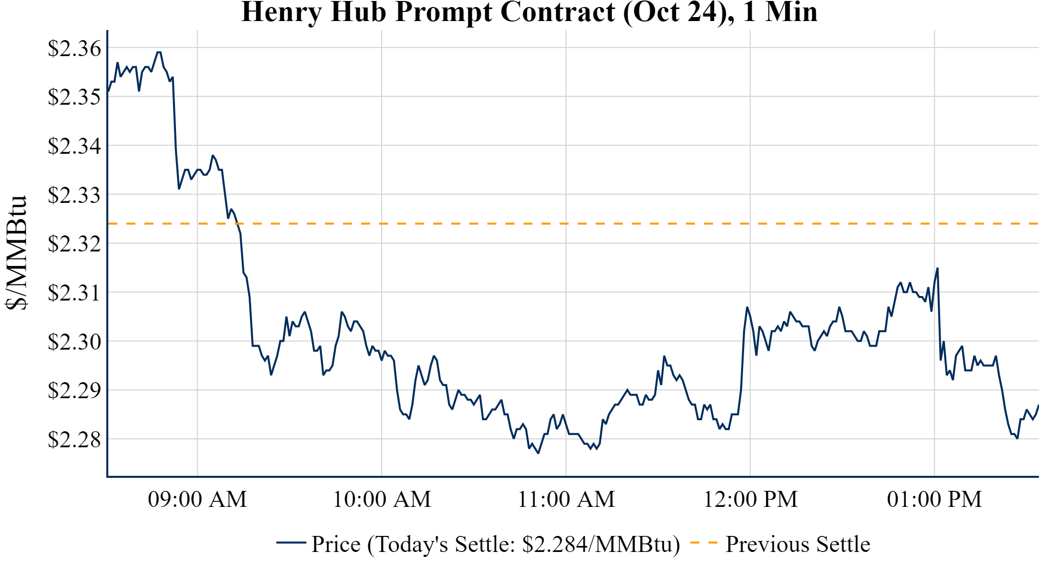 Prompt-Month Henry Hub (Oct 24) was down $-0.040 on the day, to settle at $2.284