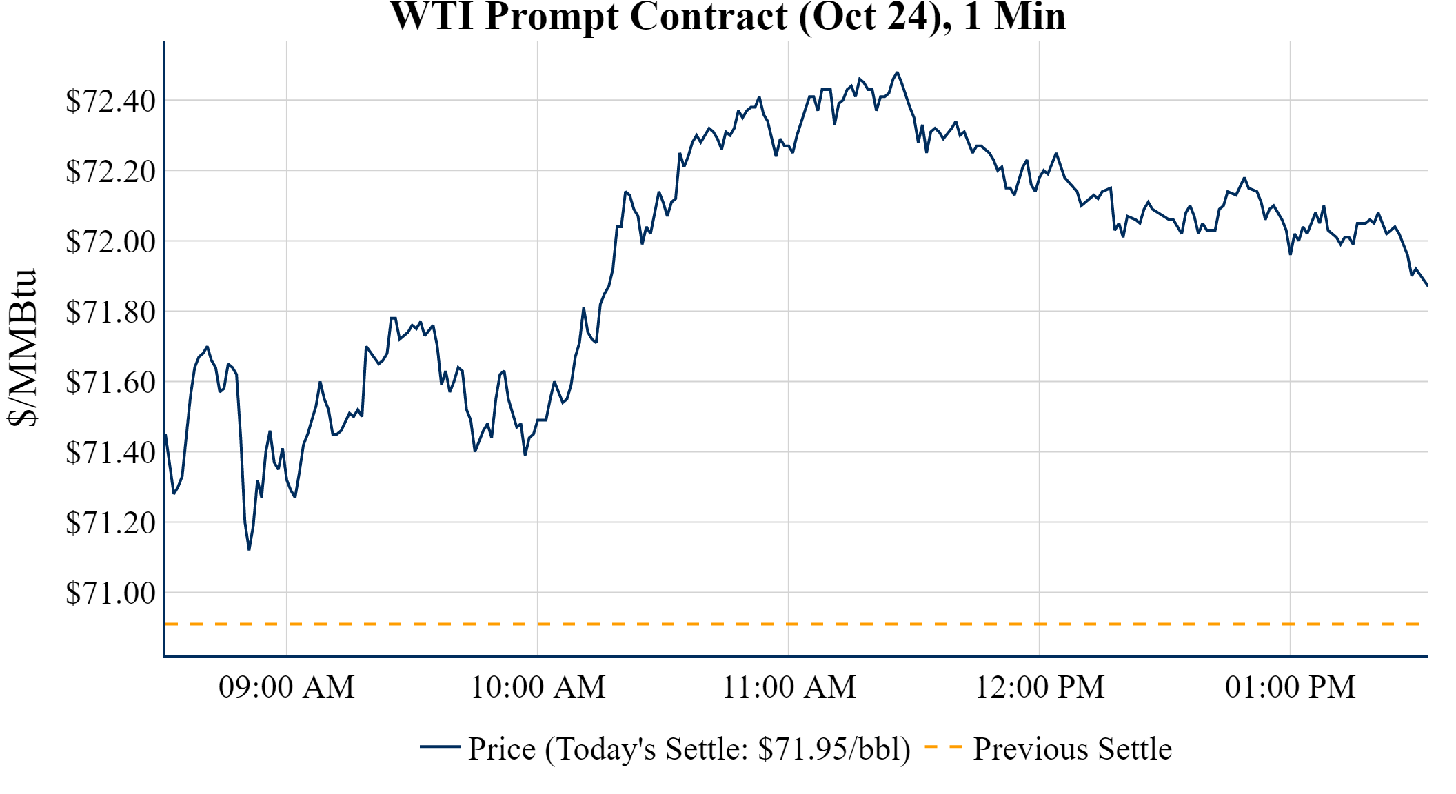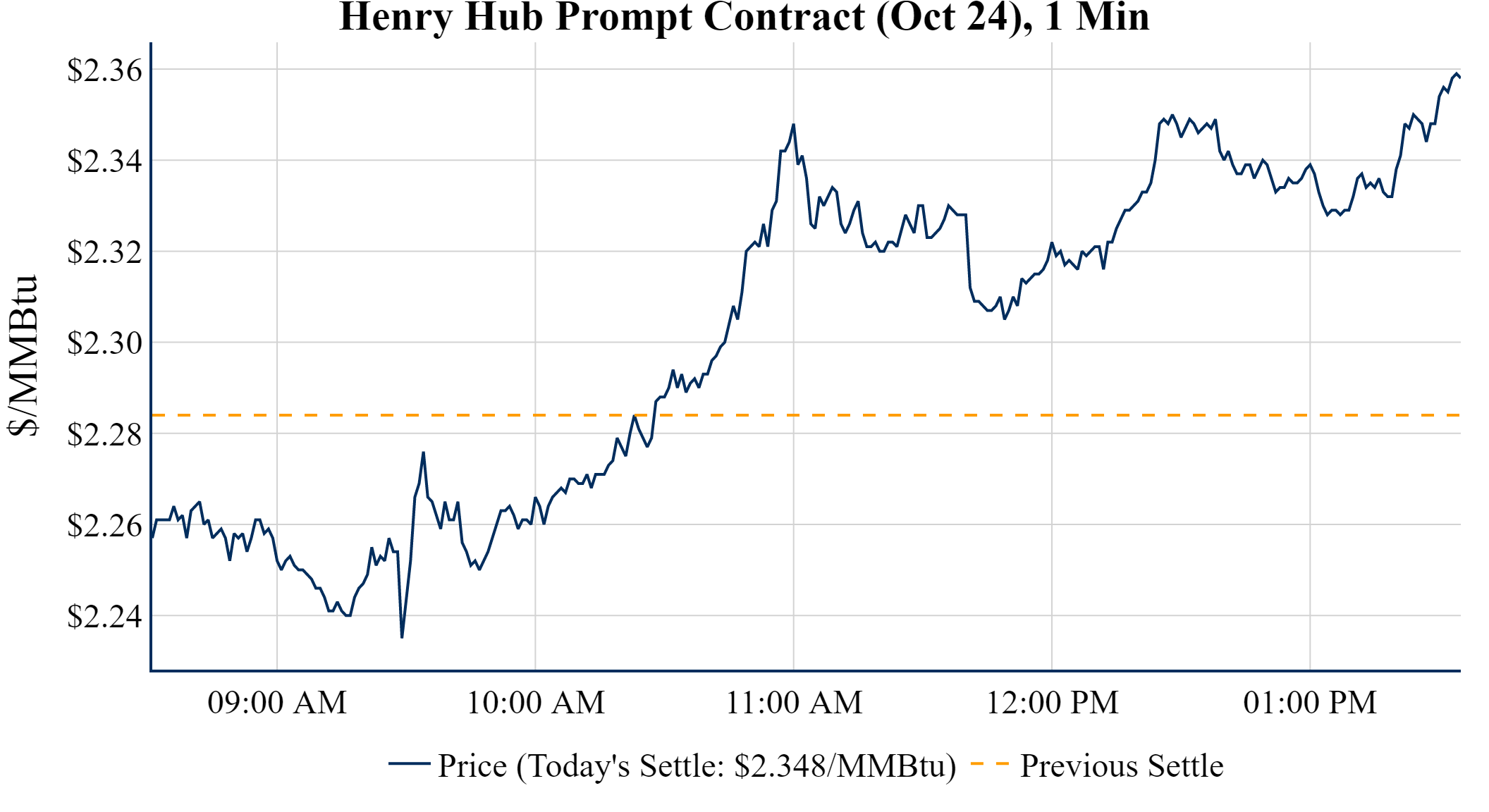 Prompt-Month Henry Hub (Oct 24) was up $0.064 on the day, to settle at $2.348Prompt-Month WTI (Oct 24) was up $1.04 on the day, to settle at $71.95