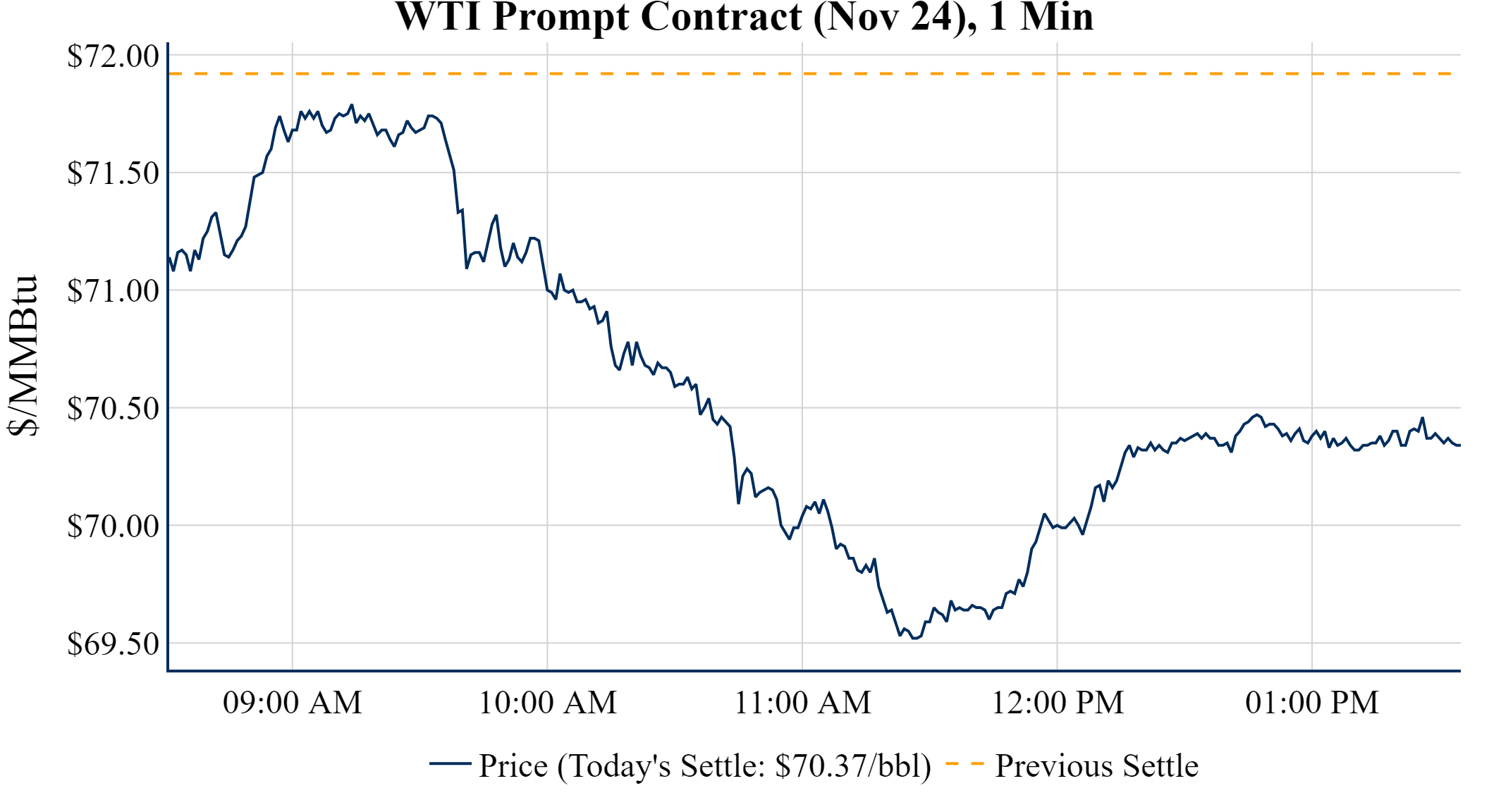 Prompt-Month Henry Hub (Oct 24) was up $0.179 on the day, to settle at $2.613 Prompt-Month WTI (Nov 24) was down $-0.63 on the day, to settle at $70.37