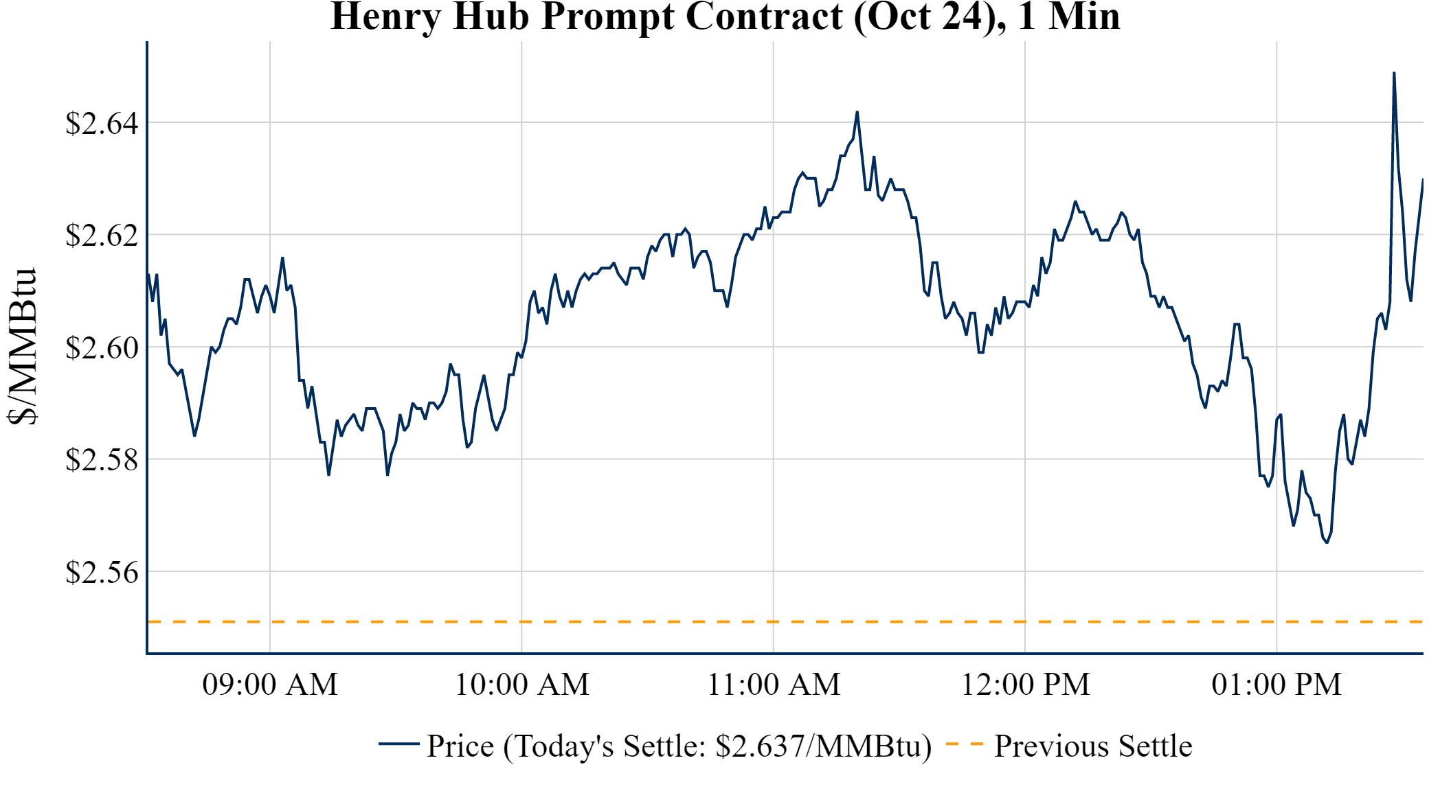 Prompt-Month Henry Hub (Oct 24) was up $0.086 on the day, to settle at $2.637 Prompt-Month WTI (Nov 24) was down $-1.87 on the day, to settle at $69.69