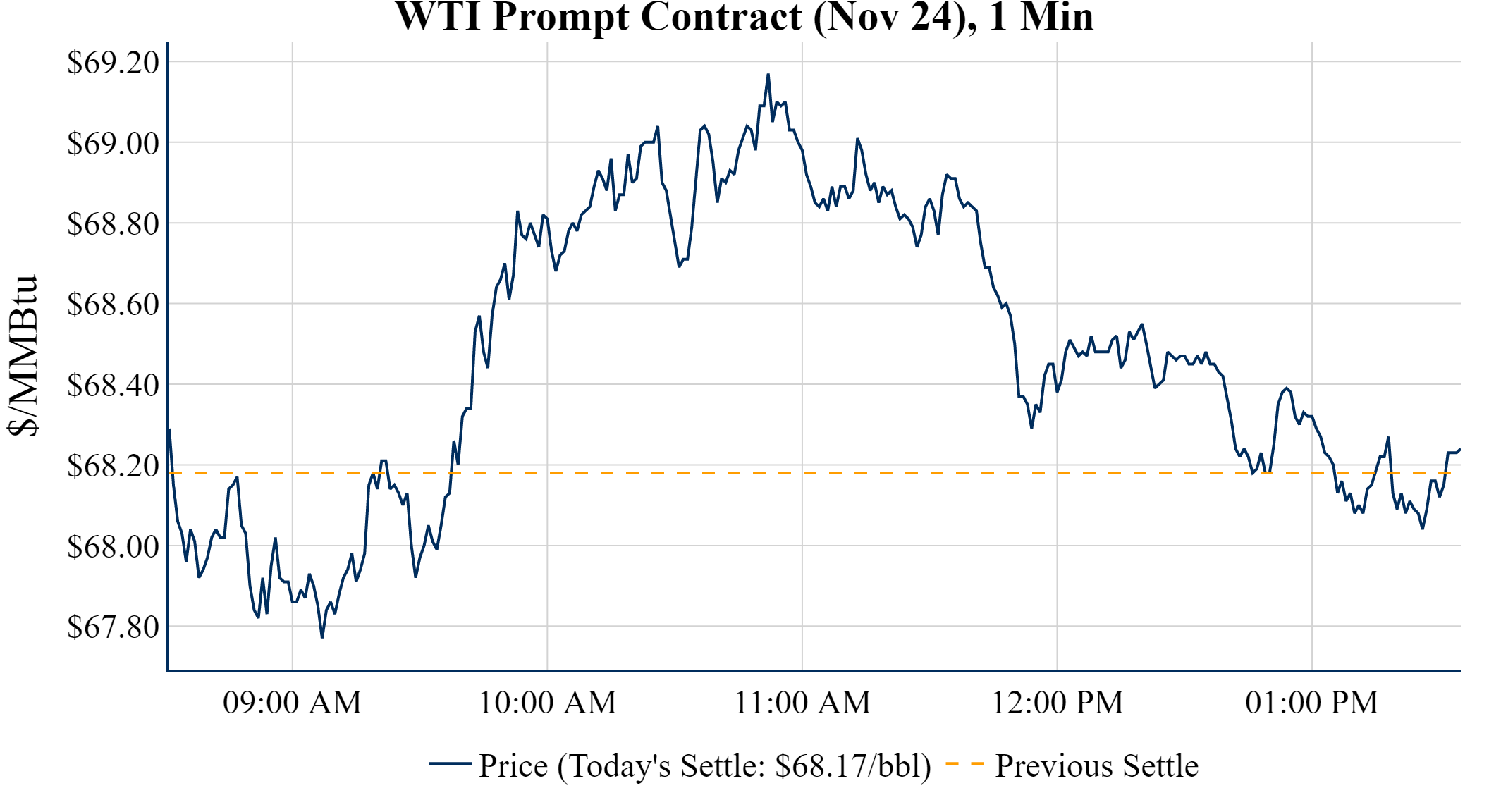 Prompt-Month WTI (Nov 24) was up $1.66 on the day, to settle at $69.83