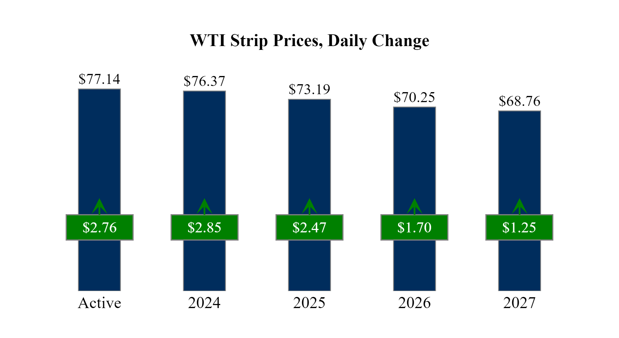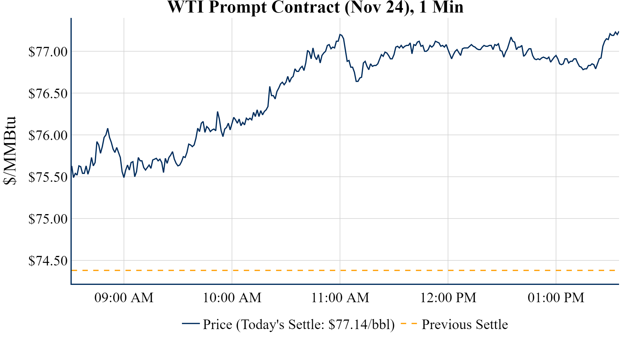Prompt-Month WTI (Nov 24) was up $2.76 on the day, to settle at $77.14