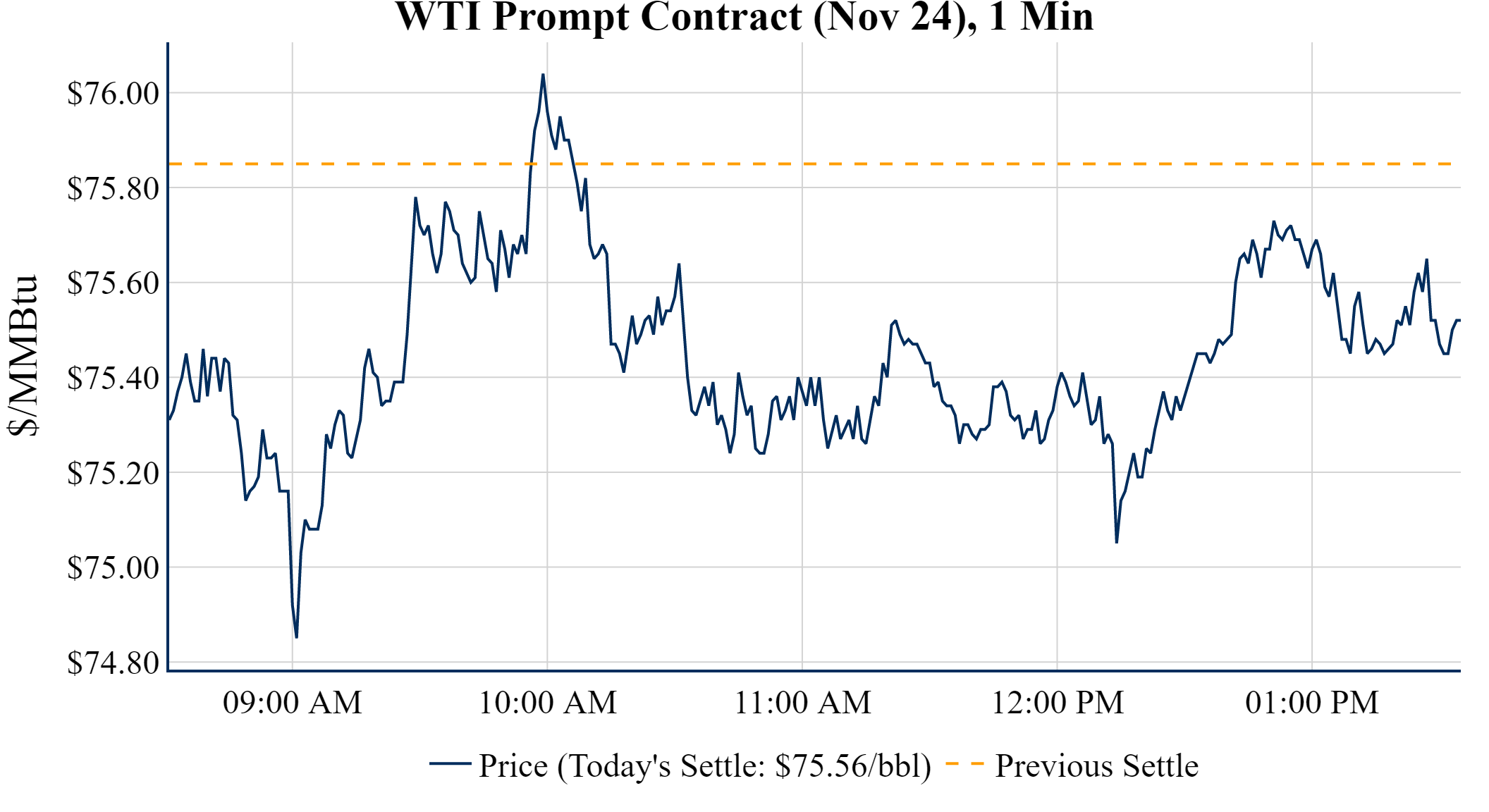 Prompt-Month WTI (Nov 24) was down $-0.29 on the day, to settle at $75.56