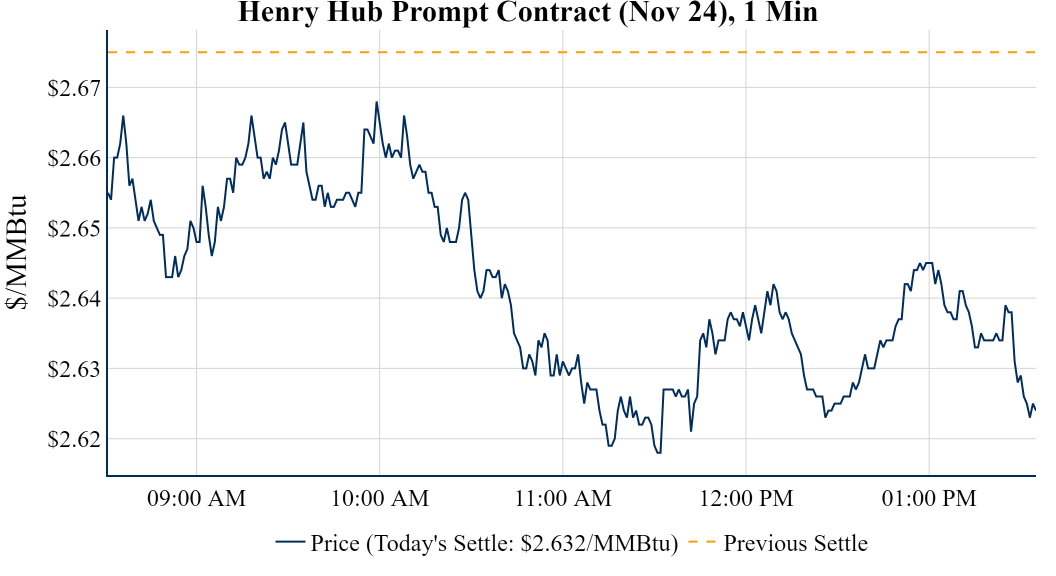 Prompt-Month Henry Hub (Nov 24) was down $-0.043 on the day, to settle at $2.632