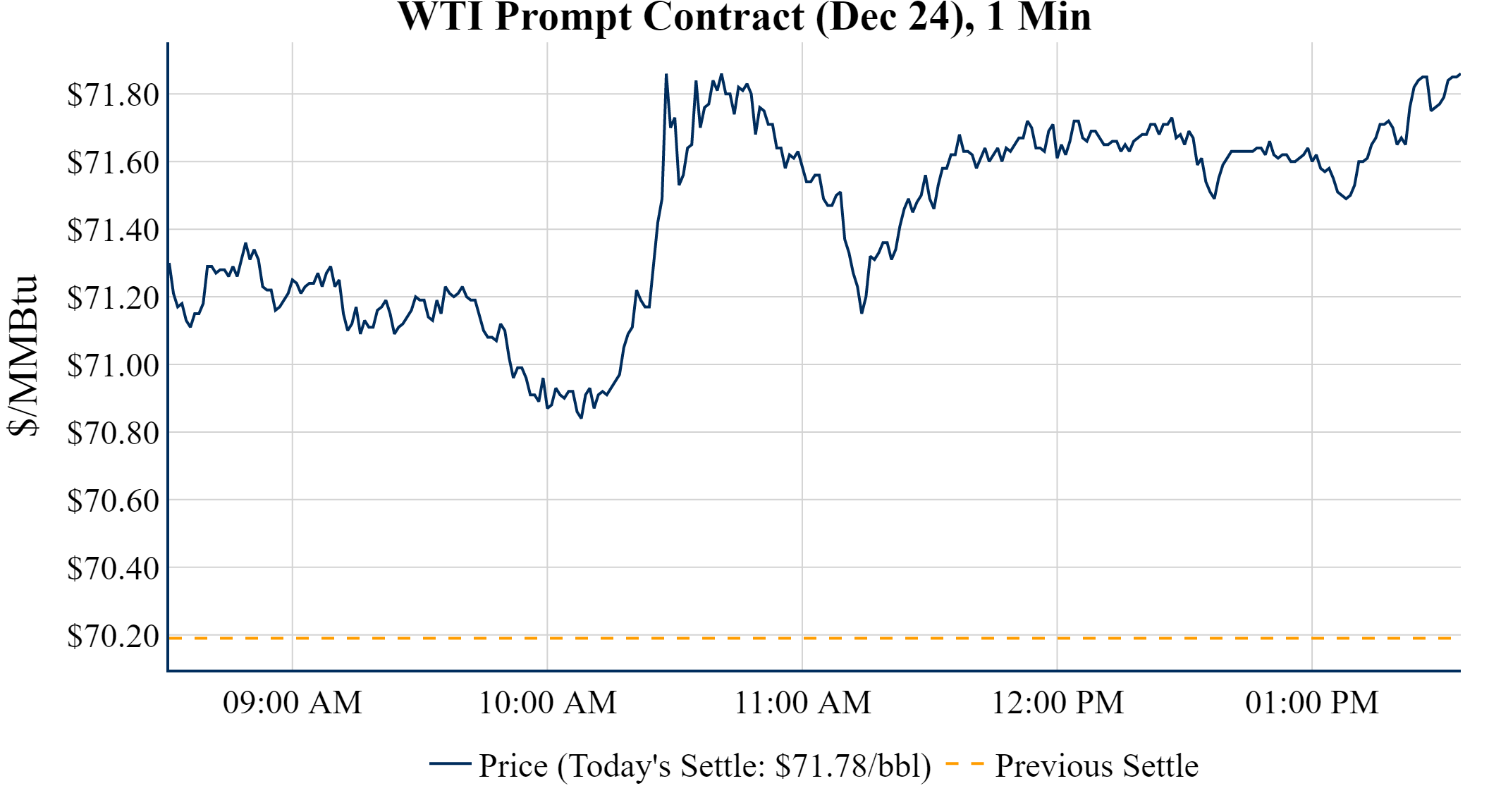 Prompt-Month WTI (Dec 24) was up $1.59 on the day, to settle at $71.78