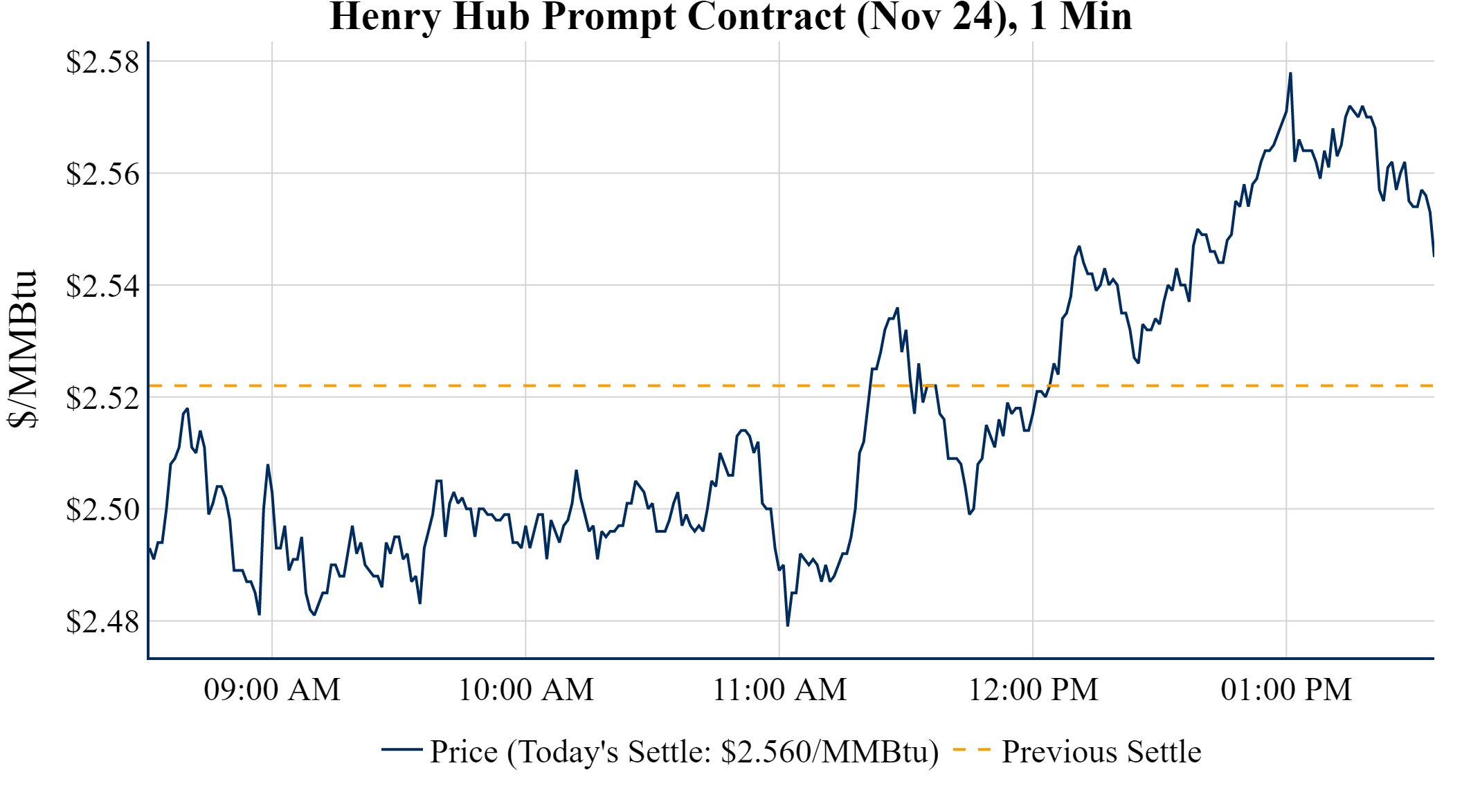 Prompt-Month Henry Hub (Nov 24) was up $0.038 on the day, to settle at $2.560