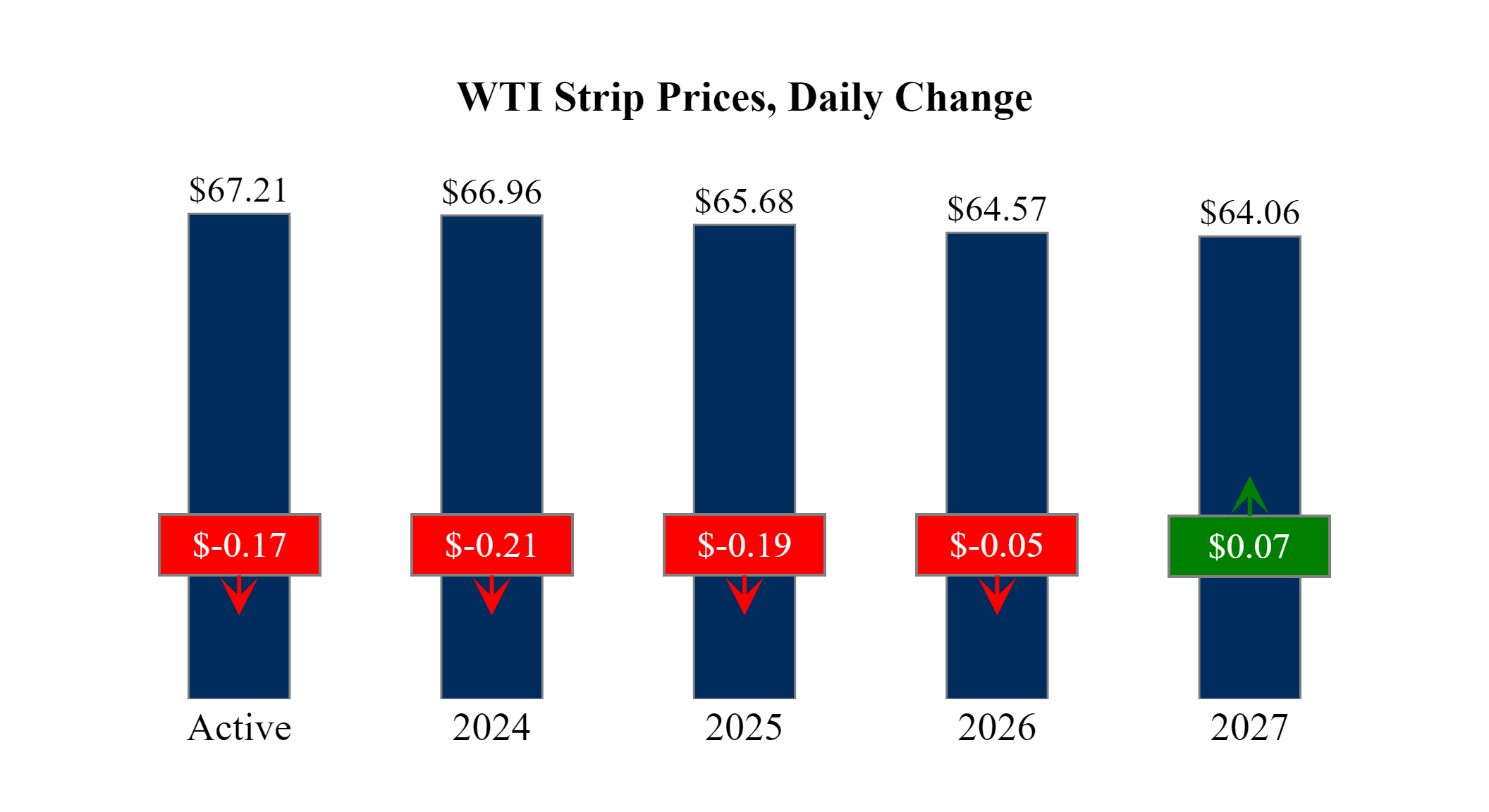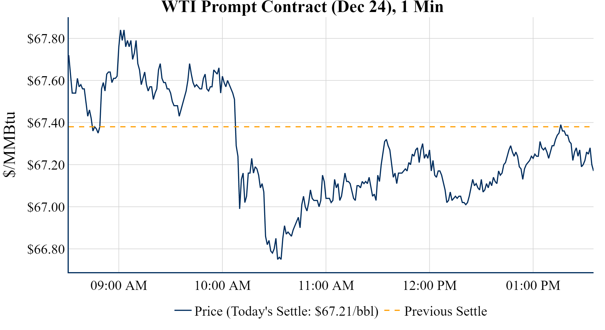Prompt-Month WTI (Dec 24) was down $-0.17 on the day, to settle at $67.21