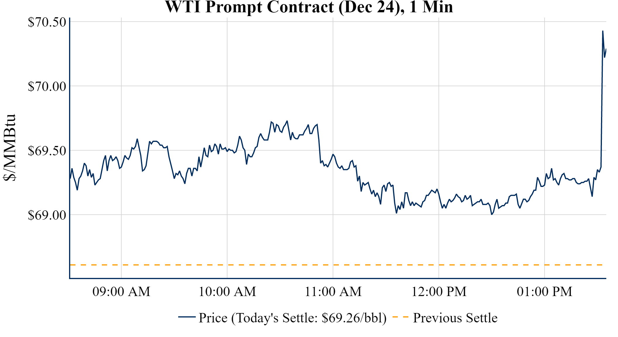 Prompt-Month WTI (Dec 24) was up $0.65 on the day, to settle at $69.26