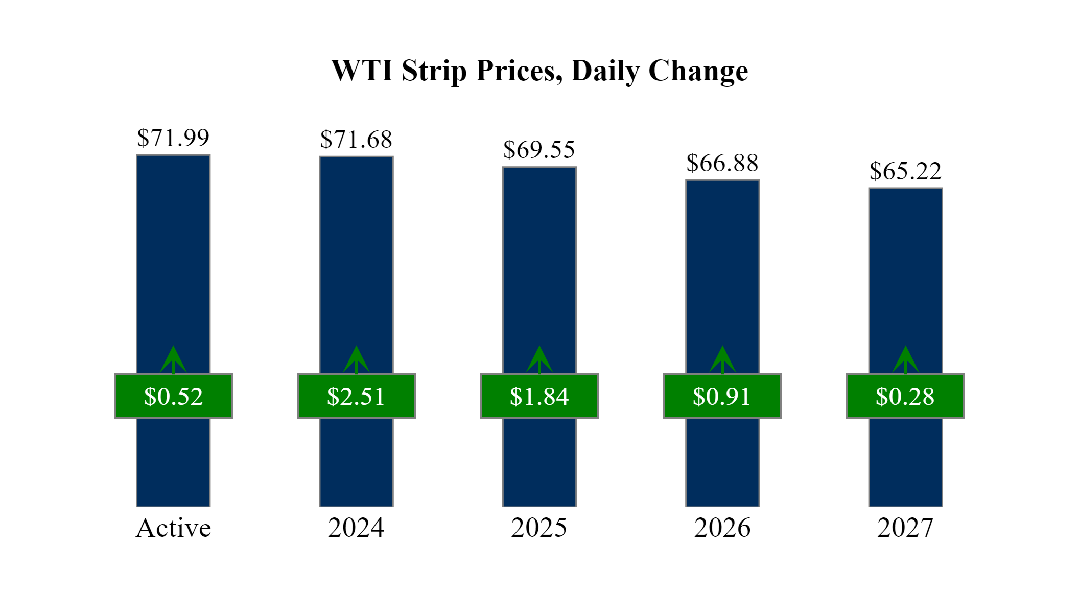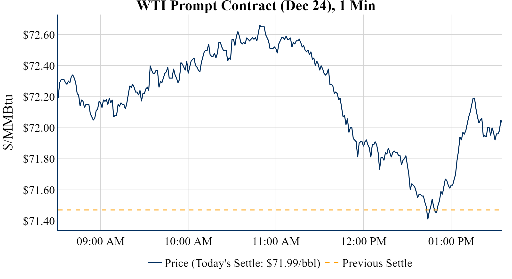 Prompt-Month WTI (Dec 24) was up $0.52 on the day, to settle at $71.99