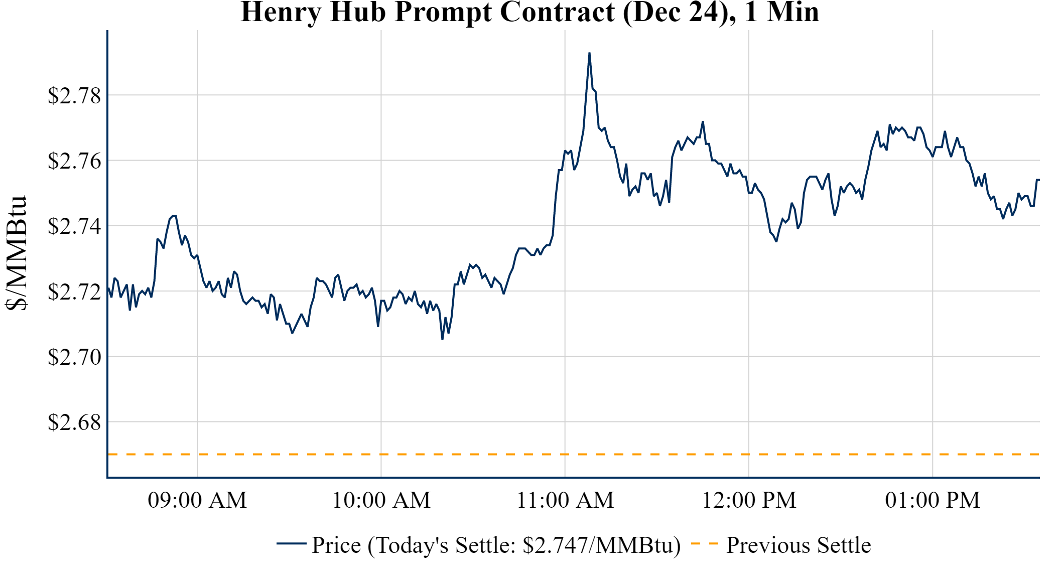 Prompt-Month Henry Hub (Dec 24) was up $0.077 on the day, to settle at $2.747
