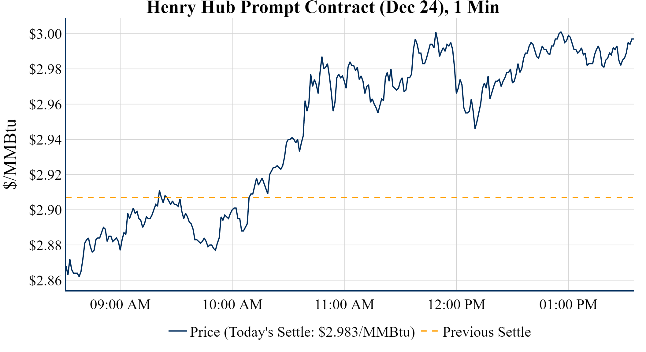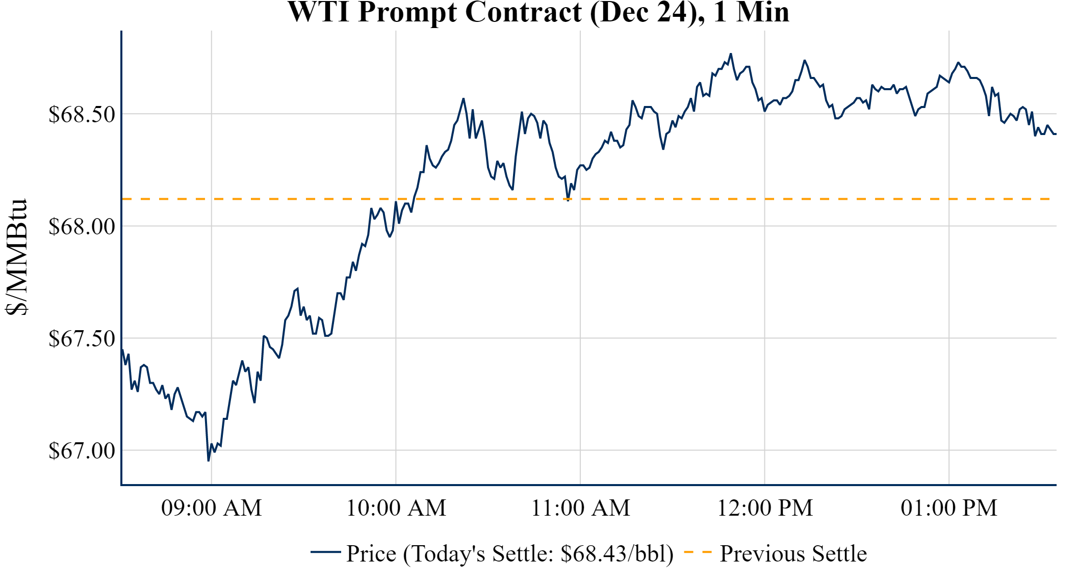 Prompt-Month Henry Hub (Dec 24) was up $0.076 on the day, to settle at $2.983Prompt-Month WTI (Dec 24) was up $0.31 on the day, to settle at $68.43
