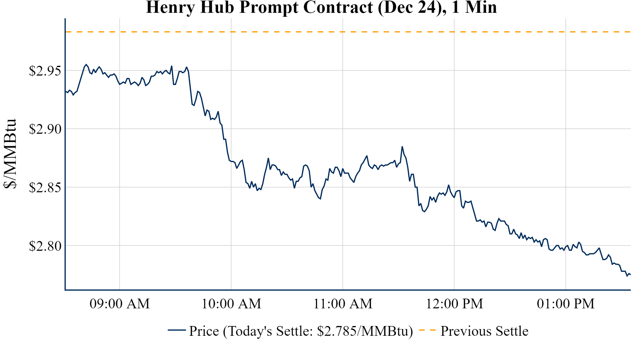 Prompt-Month Henry Hub (Dec 24) was down $-0.198 on the day, to settle at $2.785Prompt-Month WTI (Dec 24) was up $0.27 on the day, to settle at $68.70
