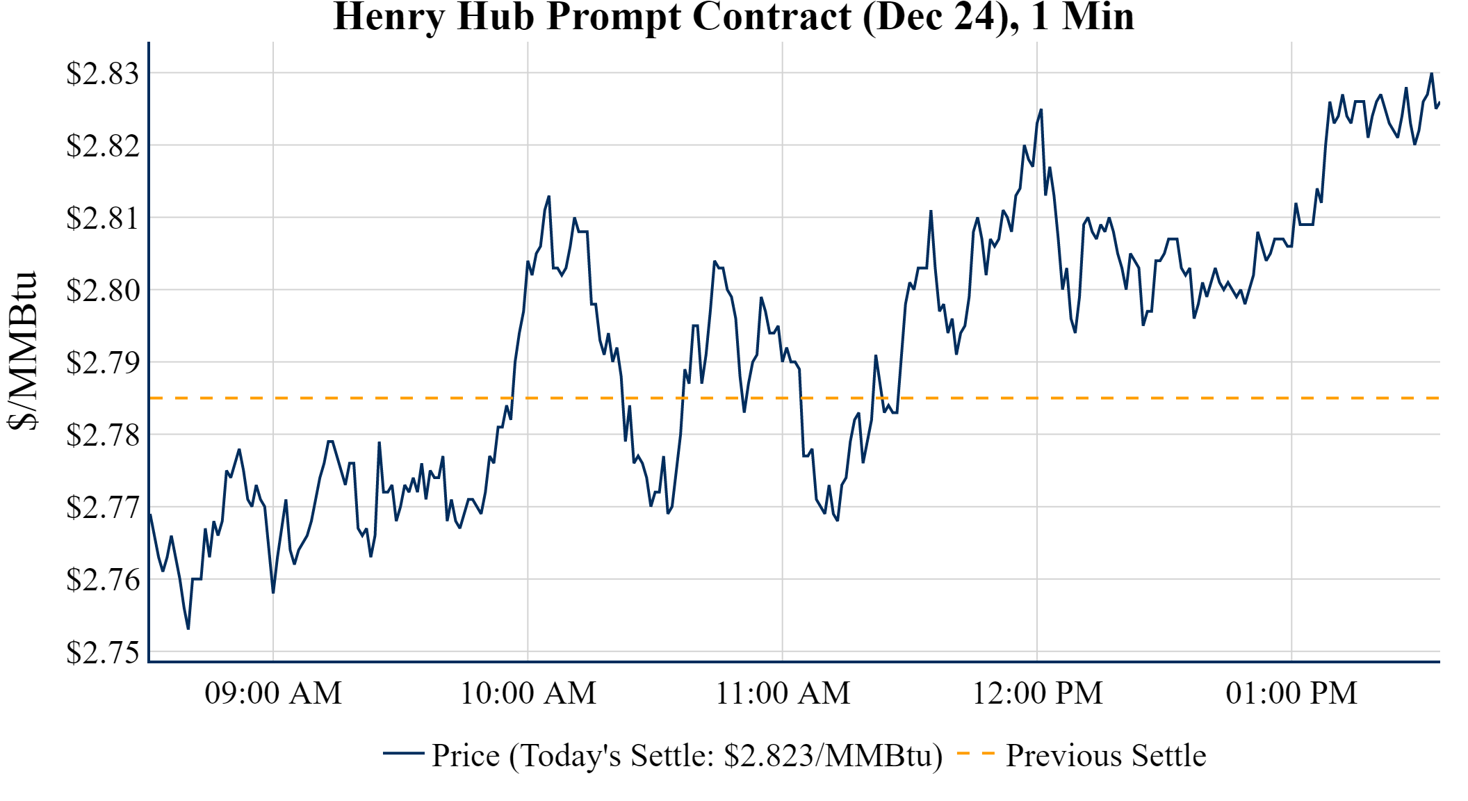 Prompt-Month Henry Hub (Dec 24) was up $0.038 on the day, to settle at $2.823Prompt-Month WTI (Dec 24) was down $-1.68 on the day, to settle at $67.02