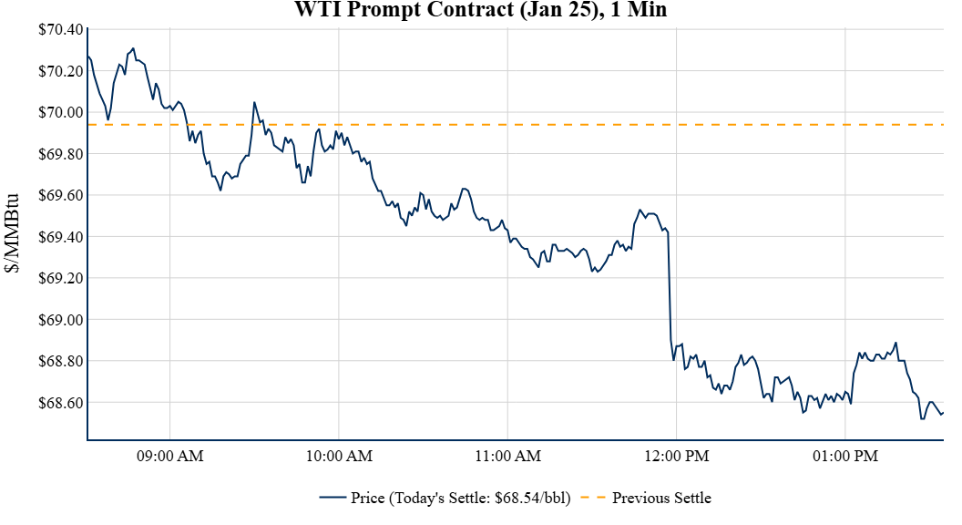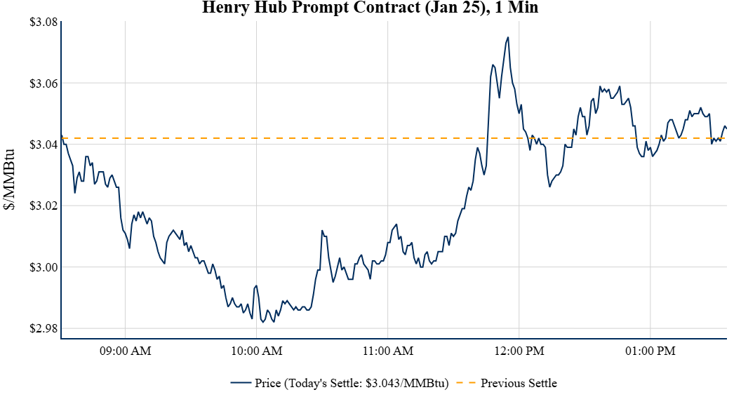 Prompt-Month Henry Hub (Jan 25) was up $0.001 on the day, to settle at $3.043Prompt-Month WTI (Jan 25) was down $1.40 on the day, to settle at $68.54