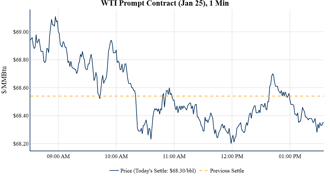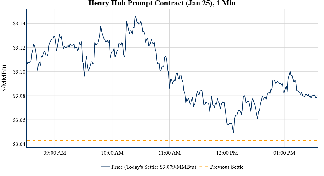 Prompt-Month Henry Hub (Jan 25) was up $0.036 on the day, to settle at $3.079Prompt-Month WTI (Jan 25) was down $0.24 on the day, to settle at $68.30
