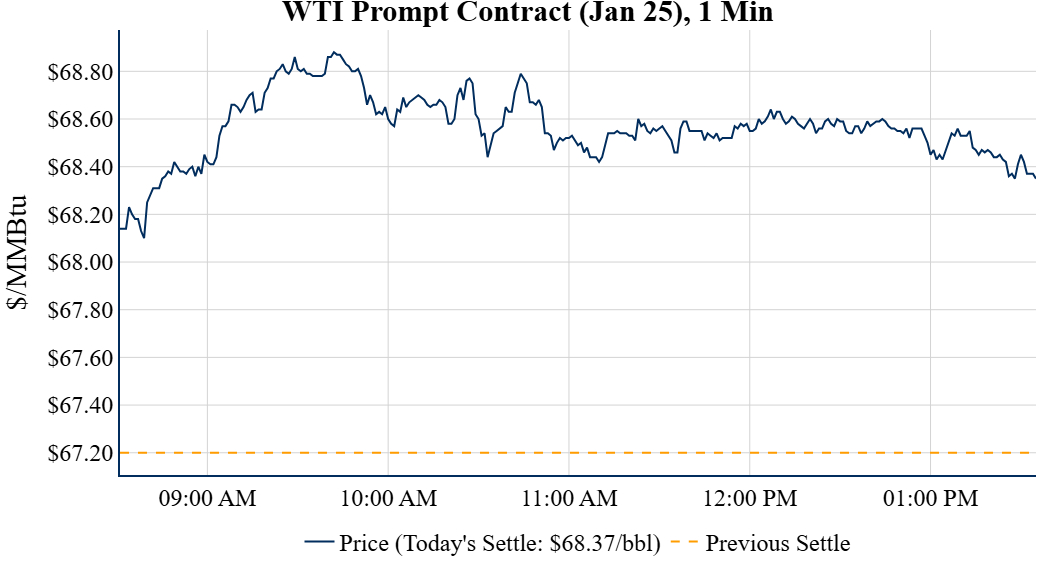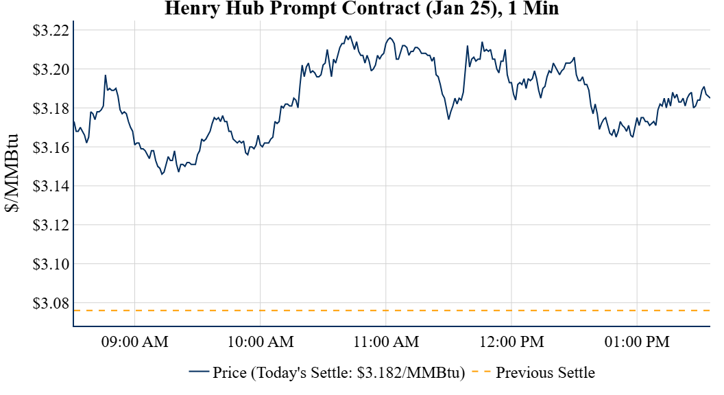 Prompt-Month Henry Hub (Jan 25) was up $0.106 on the day, to settle at $3.182Prompt-Month WTI (Jan 25) was up $1.17 on the day, to settle at $68.37