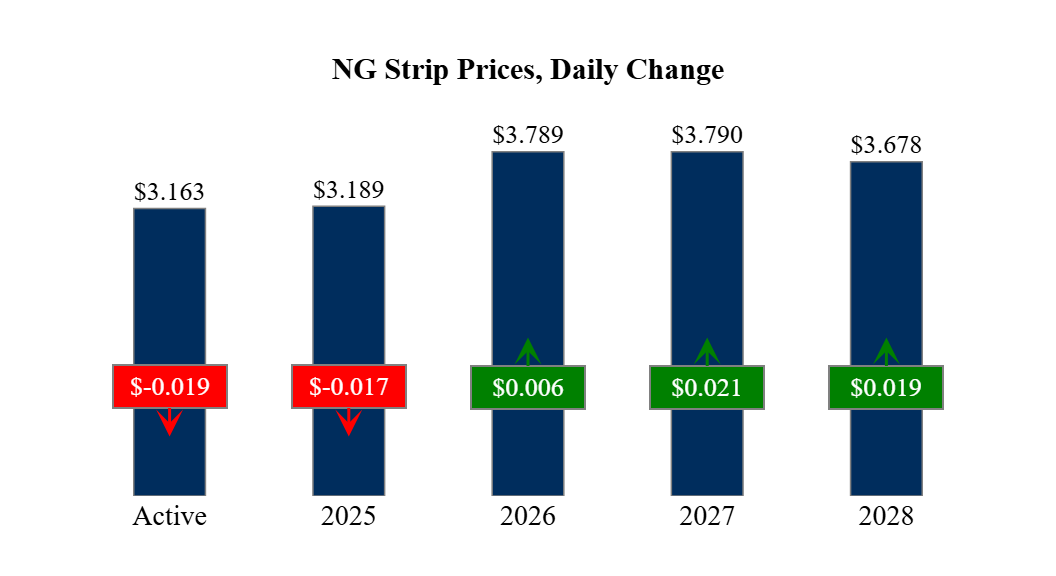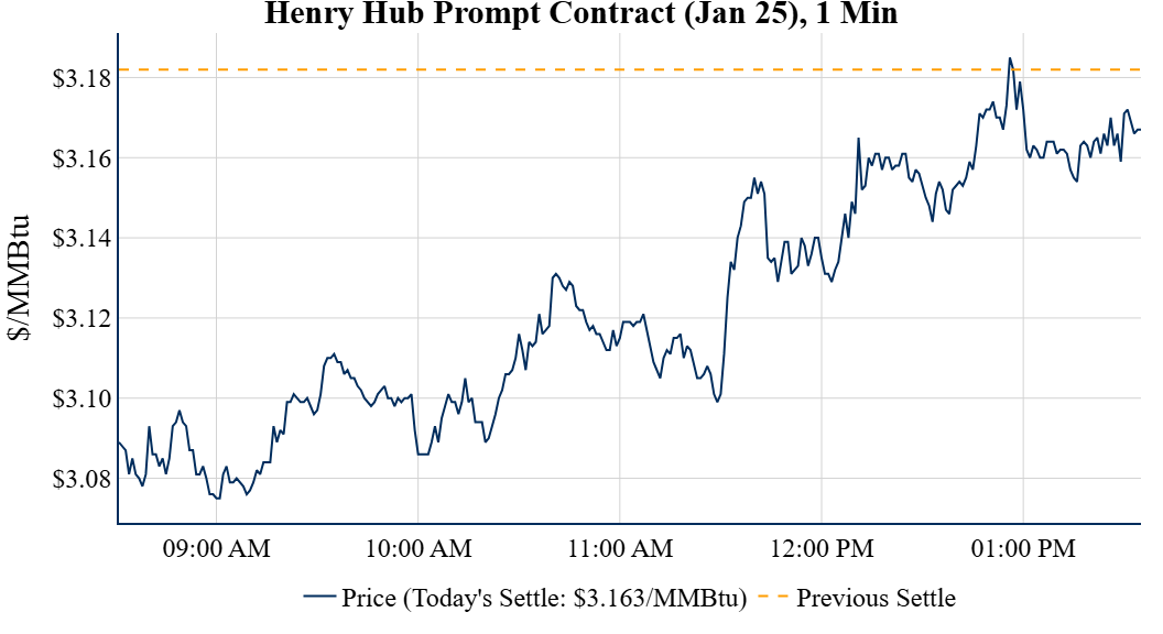 Prompt-Month Henry Hub (Jan 25) was down $0.019 on the day, to settle at $3.163Prompt-Month WTI (Jan 25) was up $0.22 on the day, to settle at $68.59