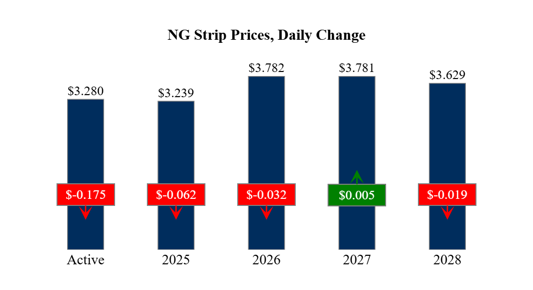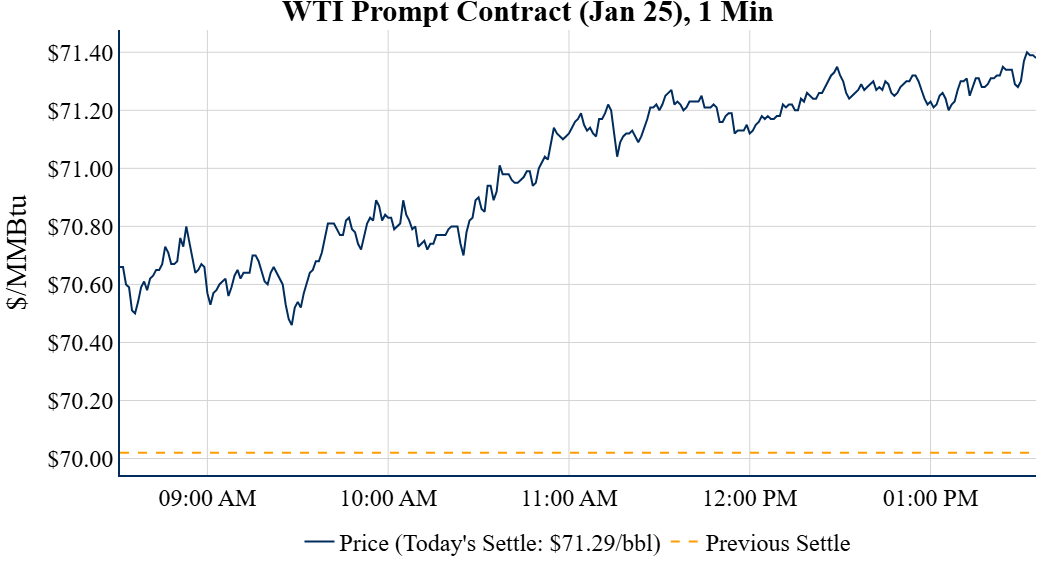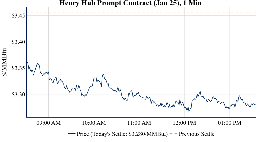 Prompt-Month Henry Hub (Jan 25) was down $0175 on the day, to settle at $3.280Prompt-Month WTI (Jan 25) was up $1.27 on the day, to settle at $71.29
