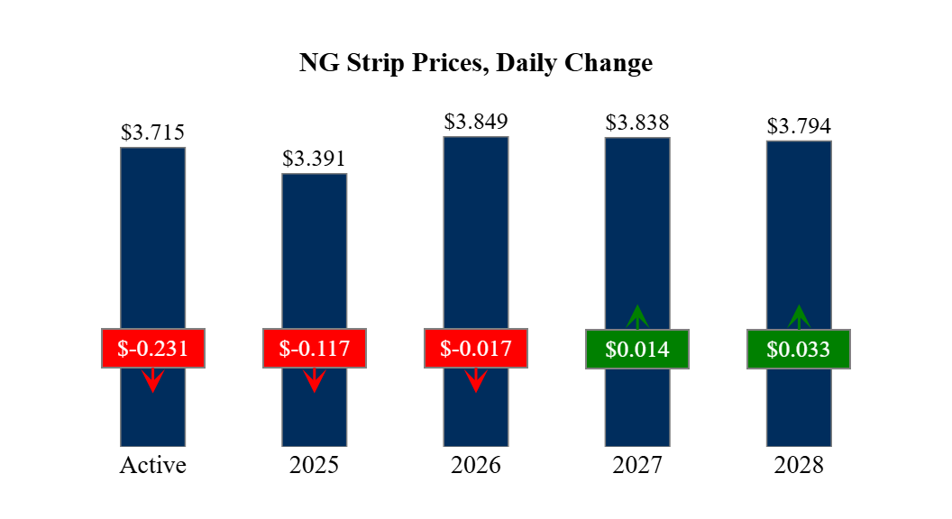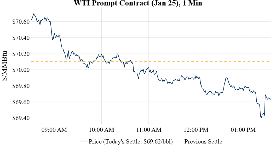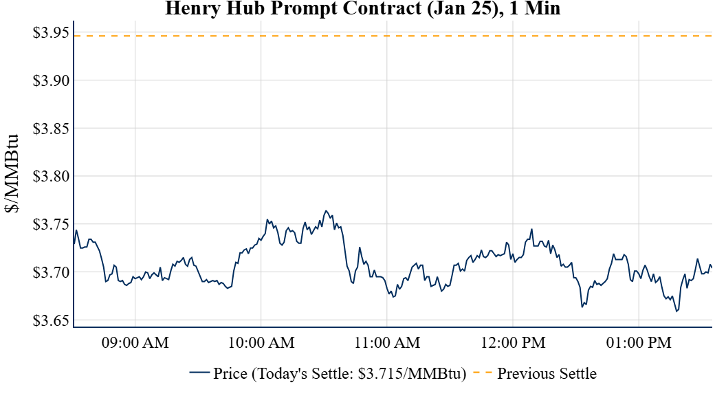 Prompt-Month Henry Hub (Jan 25) was down $0.231 on the day, to settle at $3.715Prompt-Month WTI (Feb 25) was down $0.48 on the day, to settle at $69.62