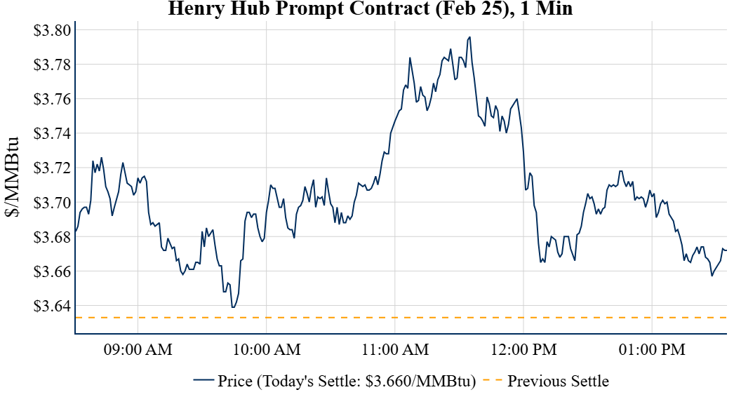 Prompt-Month Henry Hub (Feb 25) was down $0.306 on the day, to settle at $3.354Prompt-Month WTI (Feb 25) was up $0.83 on the day, to settle at $73.96