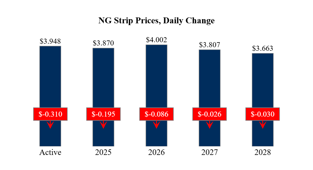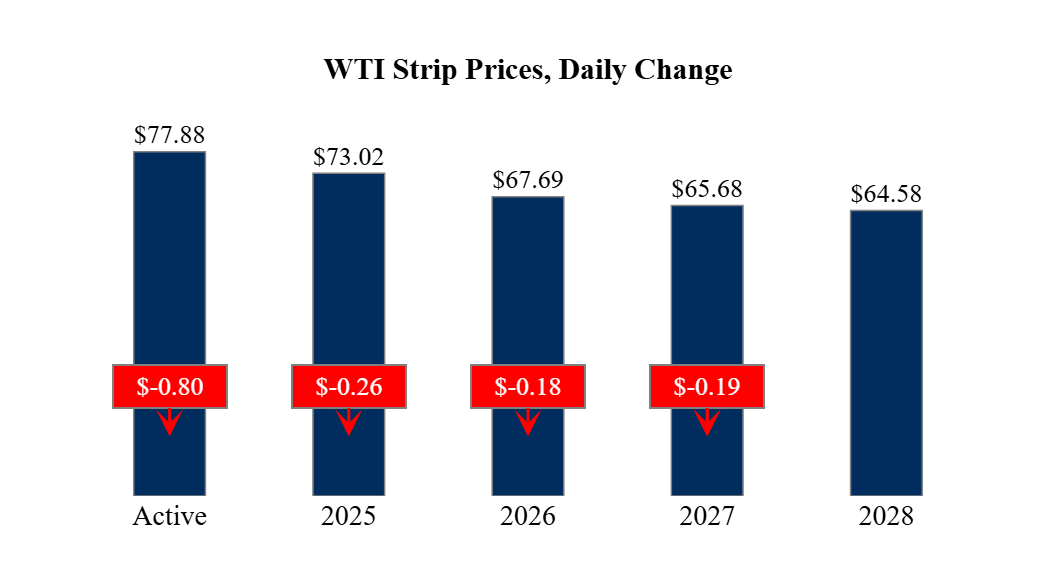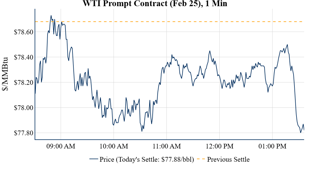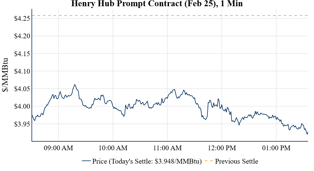 Prompt-Month Henry Hub (Feb 25) was down $0.310 on the day, to settle at $3.948Prompt-Month WTI (Feb 25) was down $0.80 on the day, to settle at $77.88