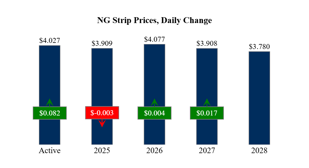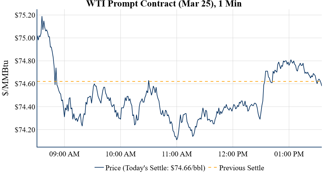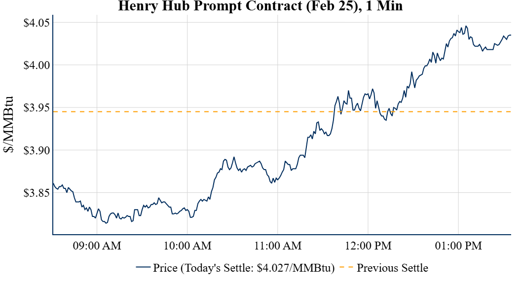 Prompt-Month Henry Hub (Feb 25) was up $0.082 on the day, to settle at $4.027Prompt-Month WTI (Mar 25) was up $0.04 on the day, to settle at $74.66