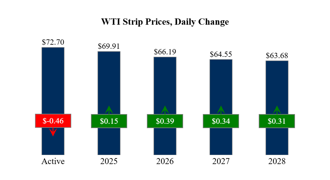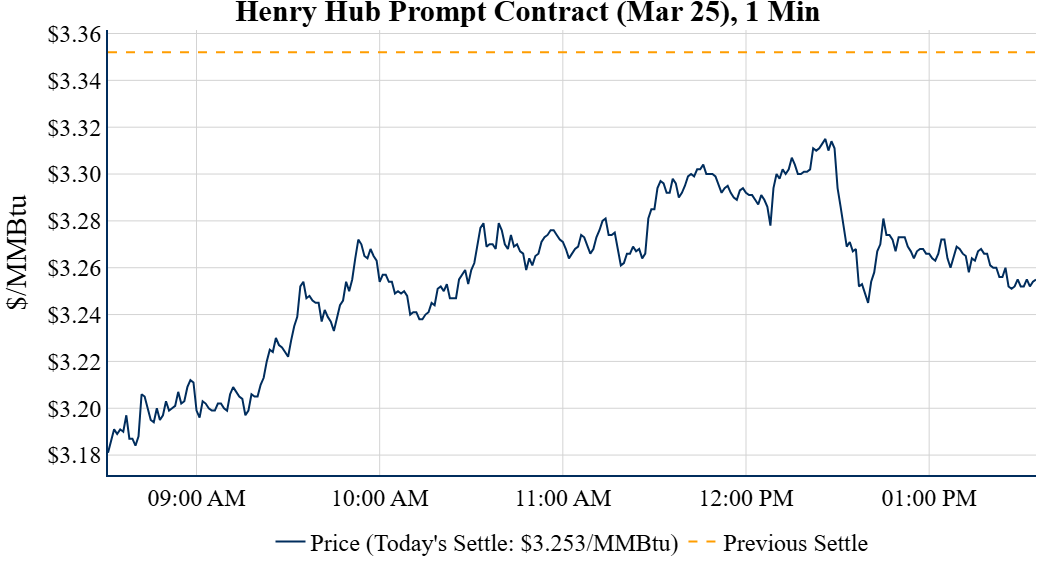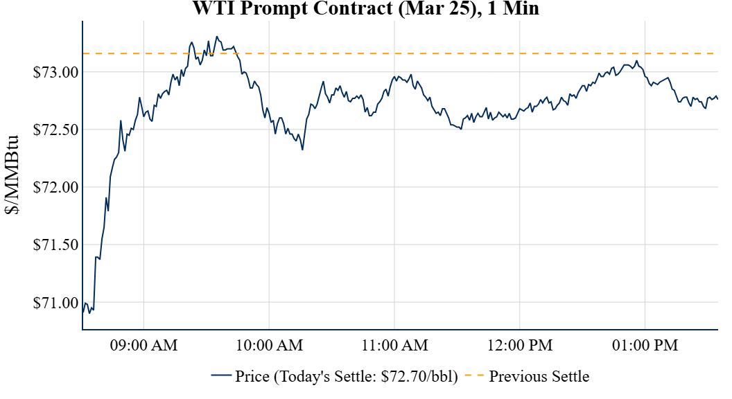 Prompt-Month Henry Hub (Mar 25) was down $0.099 on the day, to settle at $3.253Prompt-Month WTI (Mar 25) was down $0.46 on the day, to settle at $72.70