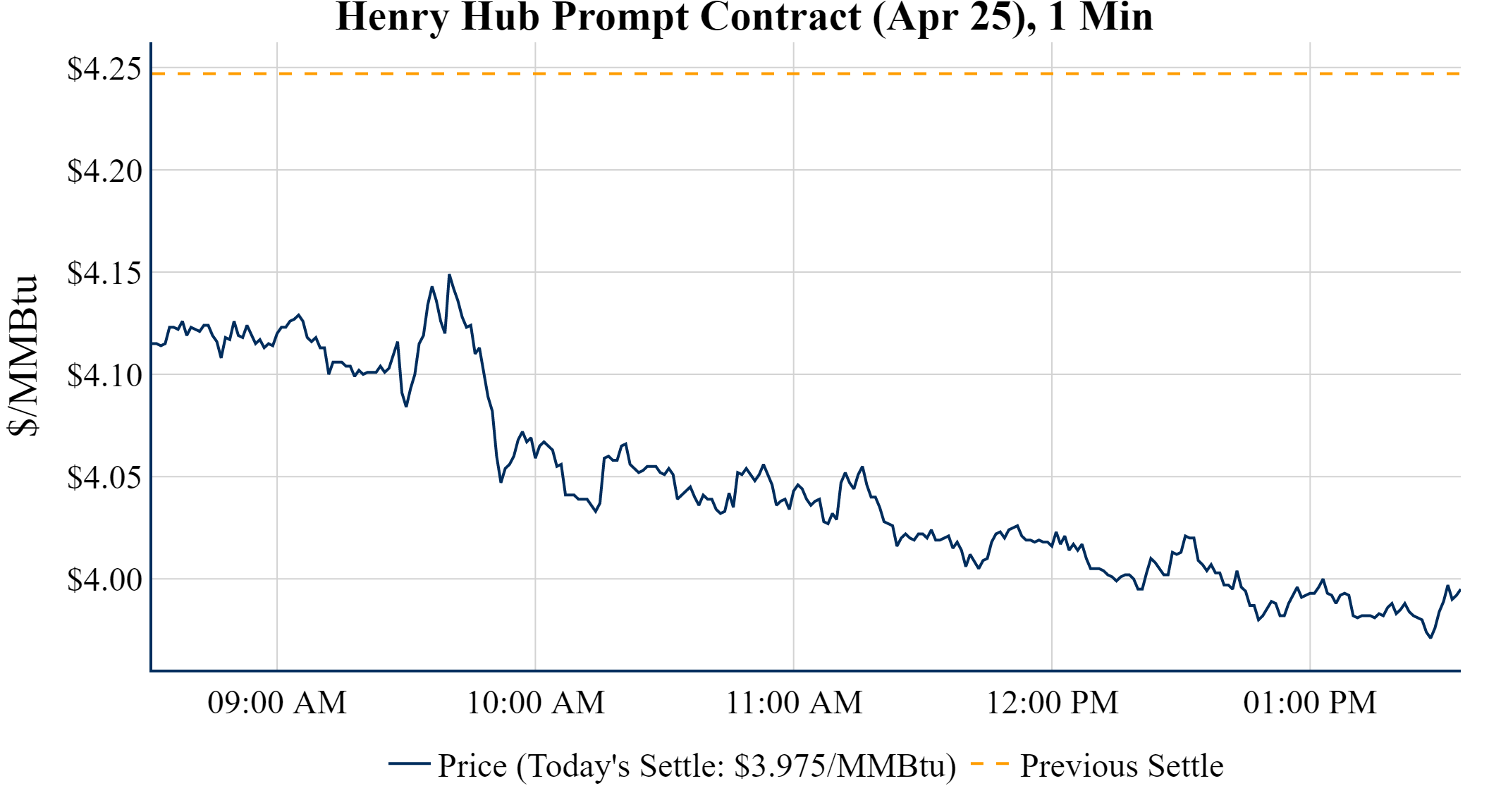 Last Look - Natural gas April Henry Hub contract settles below $4