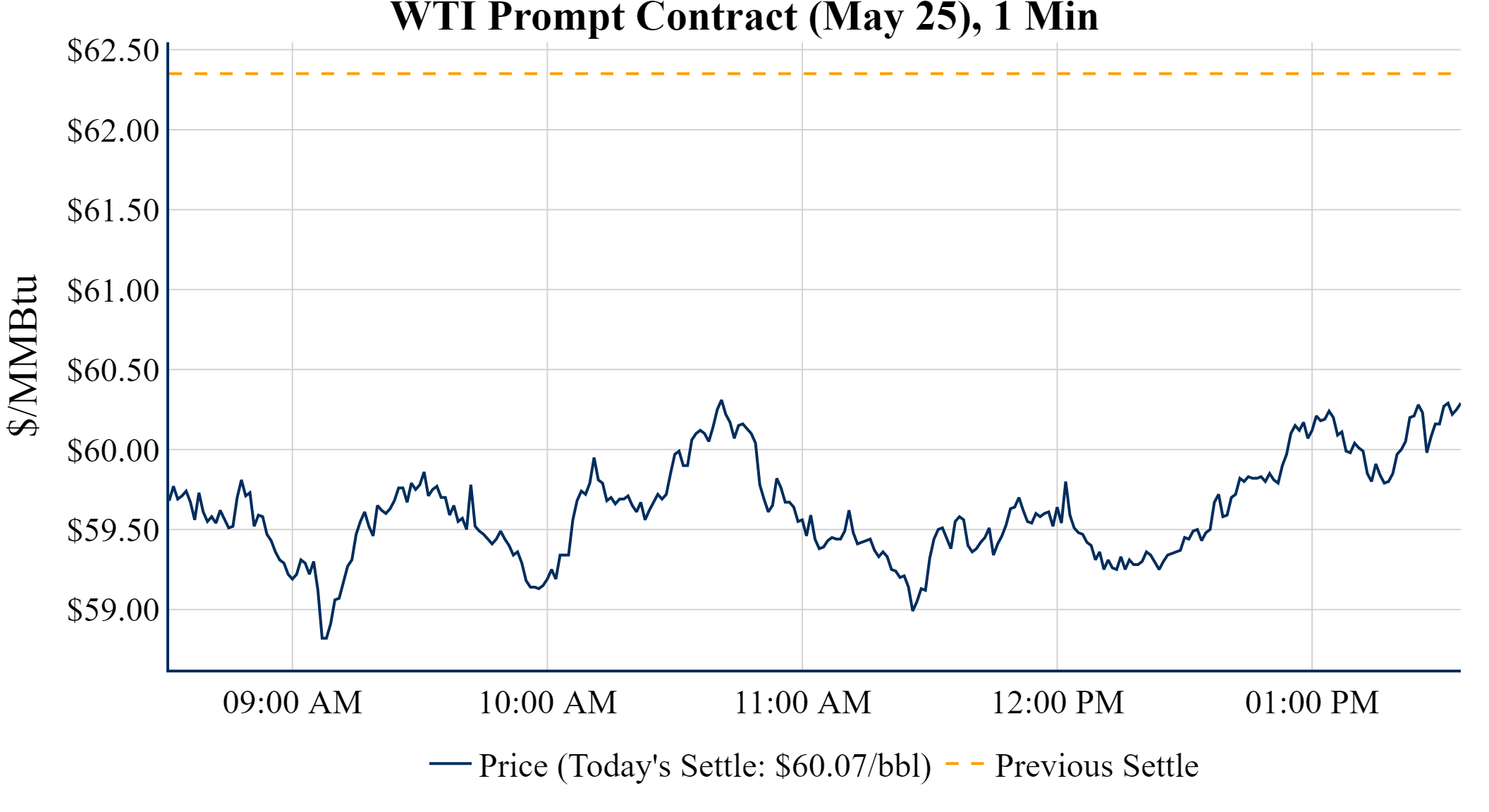 Last Look - WTI slumps back near $60/Bbl as demand concerns overshadow Trump's trade reprieve