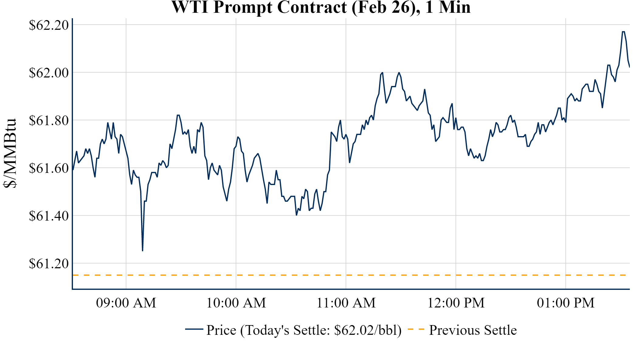 Note: Although Wednesday’s official settlement was $62.02/Bbl, prices later dropped near $60/Bbl after President Trump suggested Iran may stop its crackdown on protesters, reducing expectations of an imminent US response.