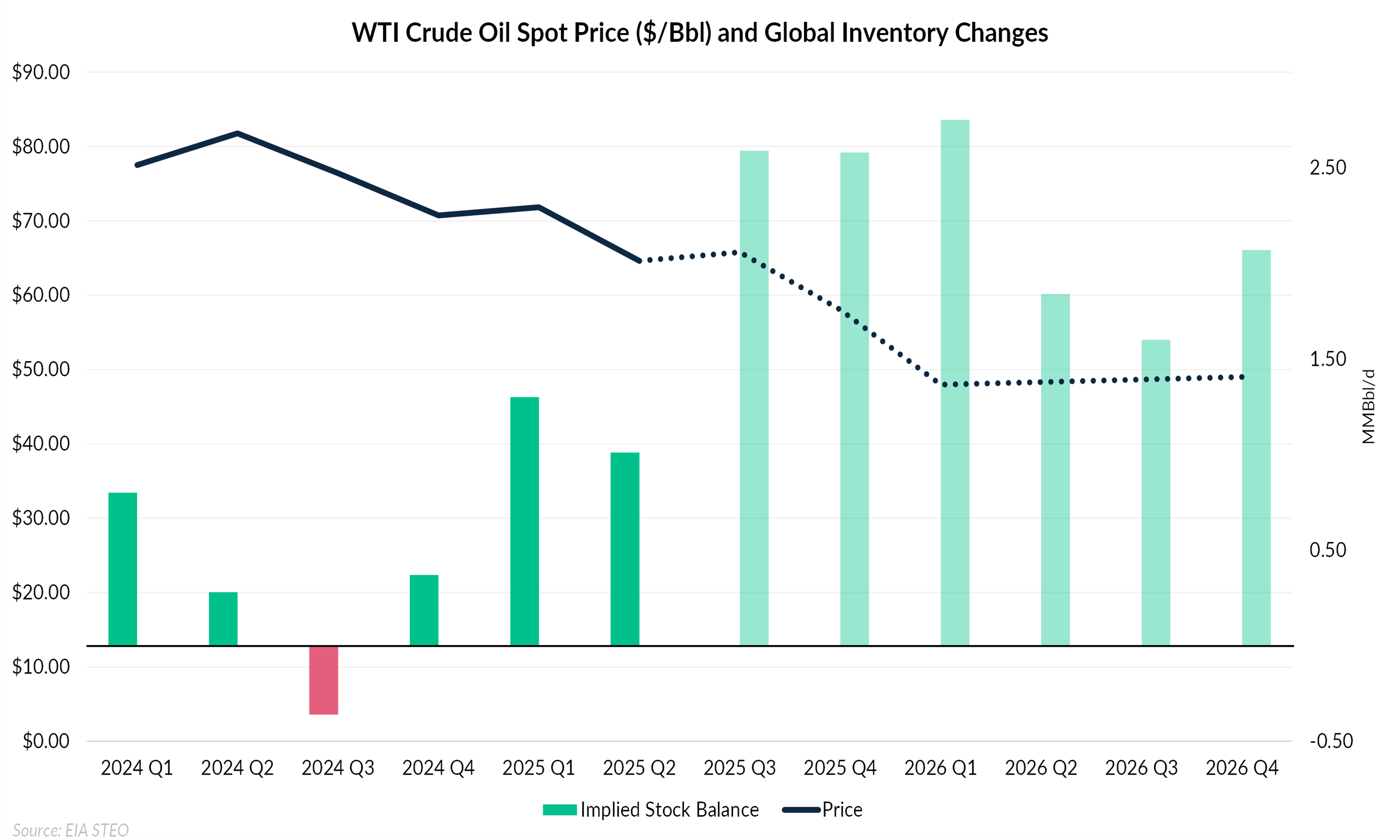The October STEO underscores a market entering a period of persistent oversupply. Expanding output from both OPEC+ and non-OPEC producers has outpaced lackluster demand growth, driving inventories higher and signaling continued price softness through 2026.
