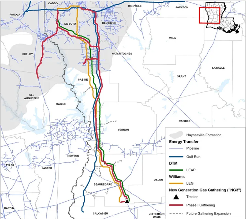 New pipeline capacity comes online later this year with LEG and NG3. These new pipelines will provide additional takeaway capacity in the preferred north-to-south route from Haynesville to Gillis area.