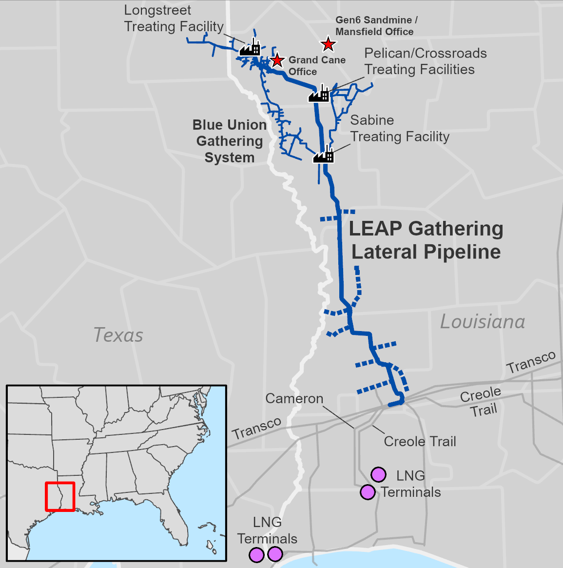 Louisiana Energy Gateway - Williams’ LEG System will gather up to 1.8 Bcf/d from the Haynesville Shale formation and other natural gas production areas in Texas and Louisiana, and deliver to LNG export terminals and other markets along the Gulf Coast. The LEG System will be comprised of two segments: the Haynesville Spine and Juniper South.