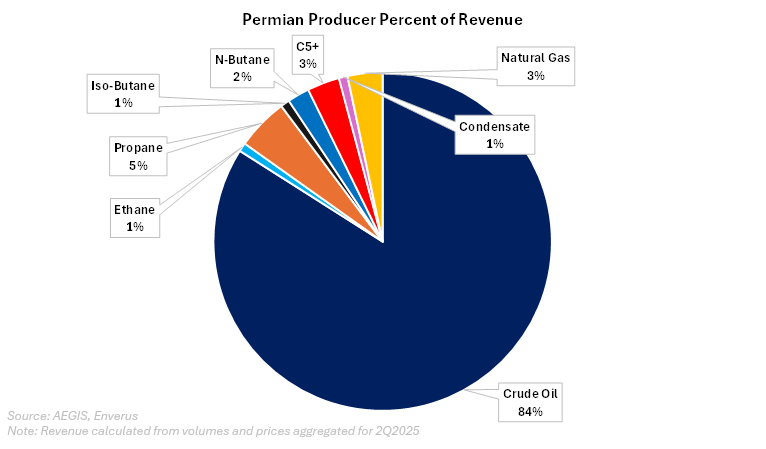 Permian operator revenues are dominated by oil, but NGLs are material and a source of idiosyncratic risk.