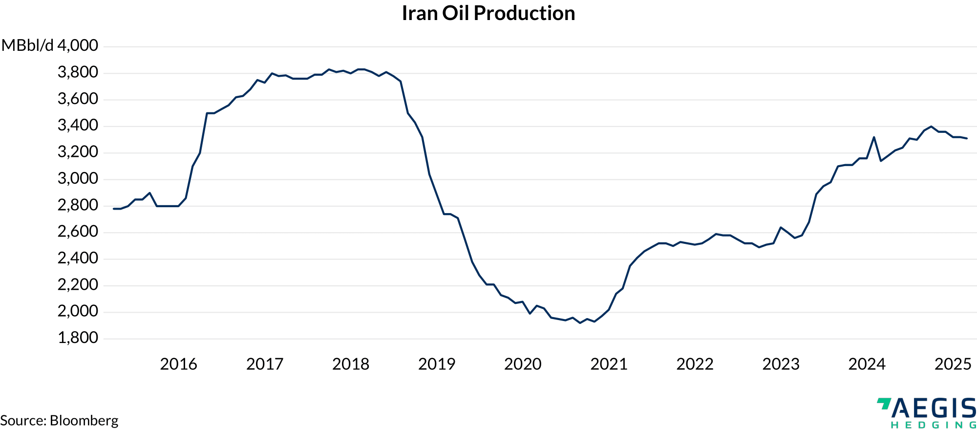 Iran’s oil production in January 2025 was recorded at 3.31 MMBbl/d, or about 3% of global supply. The country has adapted to these sanctions by relying on its “shadow fleet”—a network of tankers that operate off the radar to transport oil. By using ship-to-ship transfers and obscuring the origin of the oil, Iran has been able to keep its exports flowing, particularly to China. Nonetheless, the escalation of sanctions could lead to disruptions in supply chains, particularly in Asia, where refiners will feel the effects of reduced Iranian oil availability. This could force Chinese buyers to seek cargoes from elsewhere.