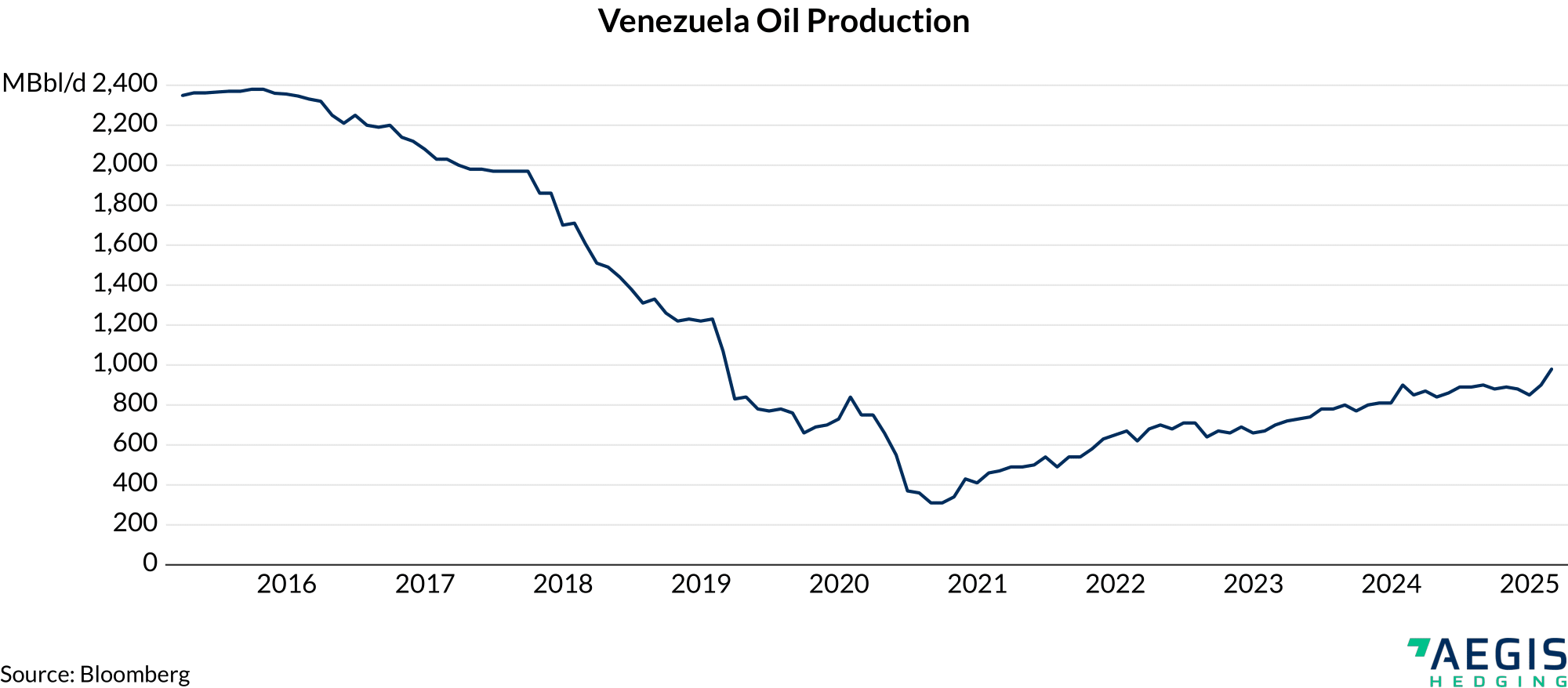 The recent US cancellation of Chevron’s license to operate in Venezuela has compounded the country’s difficulties. Chevron had been a significant player in Venezuela’s oil industry, exporting nearly 300 MBbl/d of Venezuelan crude to the US in January 2025. With the cancellation of its license, US Gulf Coast refineries that had relied on Venezuelan crude are now facing a supply gap. This shift in supply could push refiners to seek alternatives from other Latin American producers, such as Colombia or Guyana, or from further afield in the Middle East and West Africa.