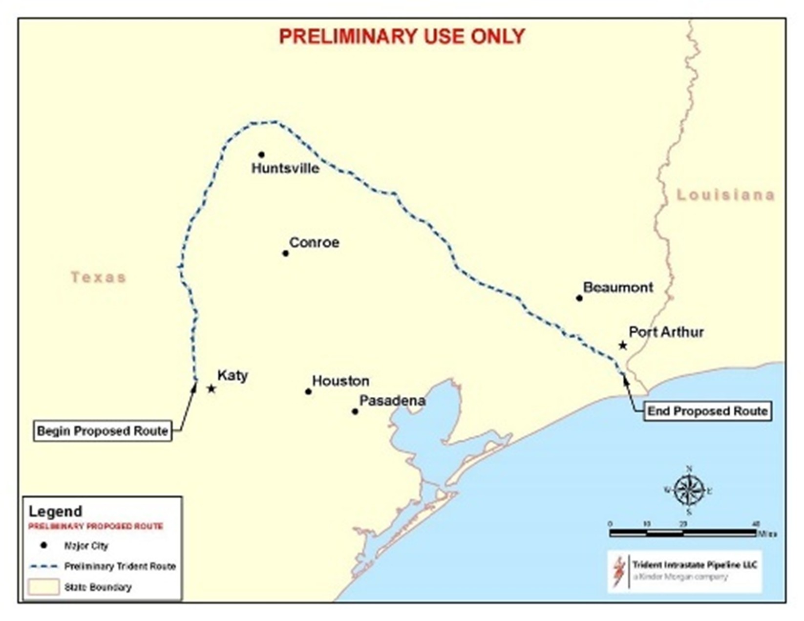 Kinder announced an increase in capacity for Trident from 1.5 Bcf/d to 2 Bcf/d. The increase comes after the company said it secured a new commitment from an undisclosed LNG customer. The pipeline will take gas over 200 miles from Katy, Texas to near Port Arthur, Texas. The project will terminate at the Golden Pass LNG export facility. Kinder expects the project to come online in 1Q 2027. Additional capacity from the Katy/HSC area to demand centers near the Texas/Louisiana border should improve prices on the Texas Gulf Coast including Katy, HSC, and even Agua Dulce in South Texas. Trident would help move supply away from these hubs that are receiving more gas from the Permian. |
