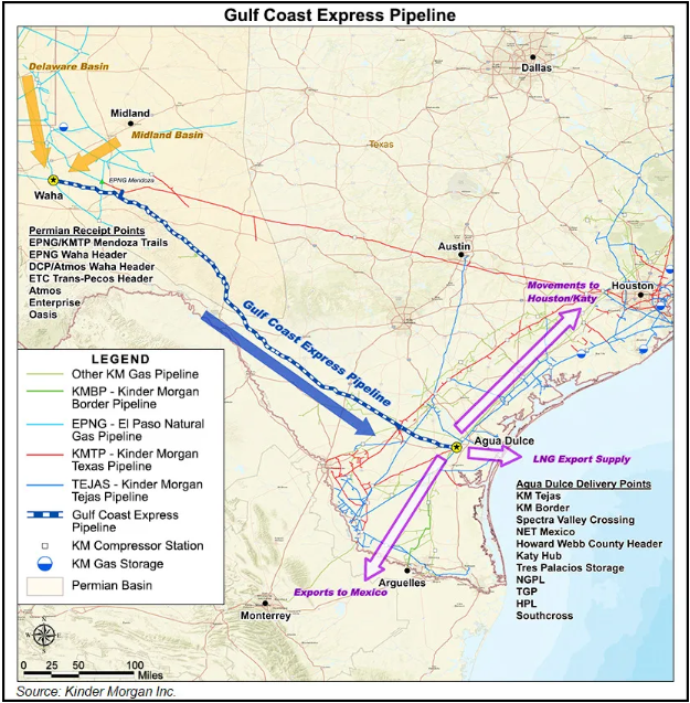 As one of the largest midstream companies in the US, Kinder Morgan is heavily followed by the natural gas industry. Infrastructure shifts are key to understanding future gas flows and their effect on local gas basis prices. See our reference pages for everything Haynesville, Permian, Rockies, and Appalachian gas.