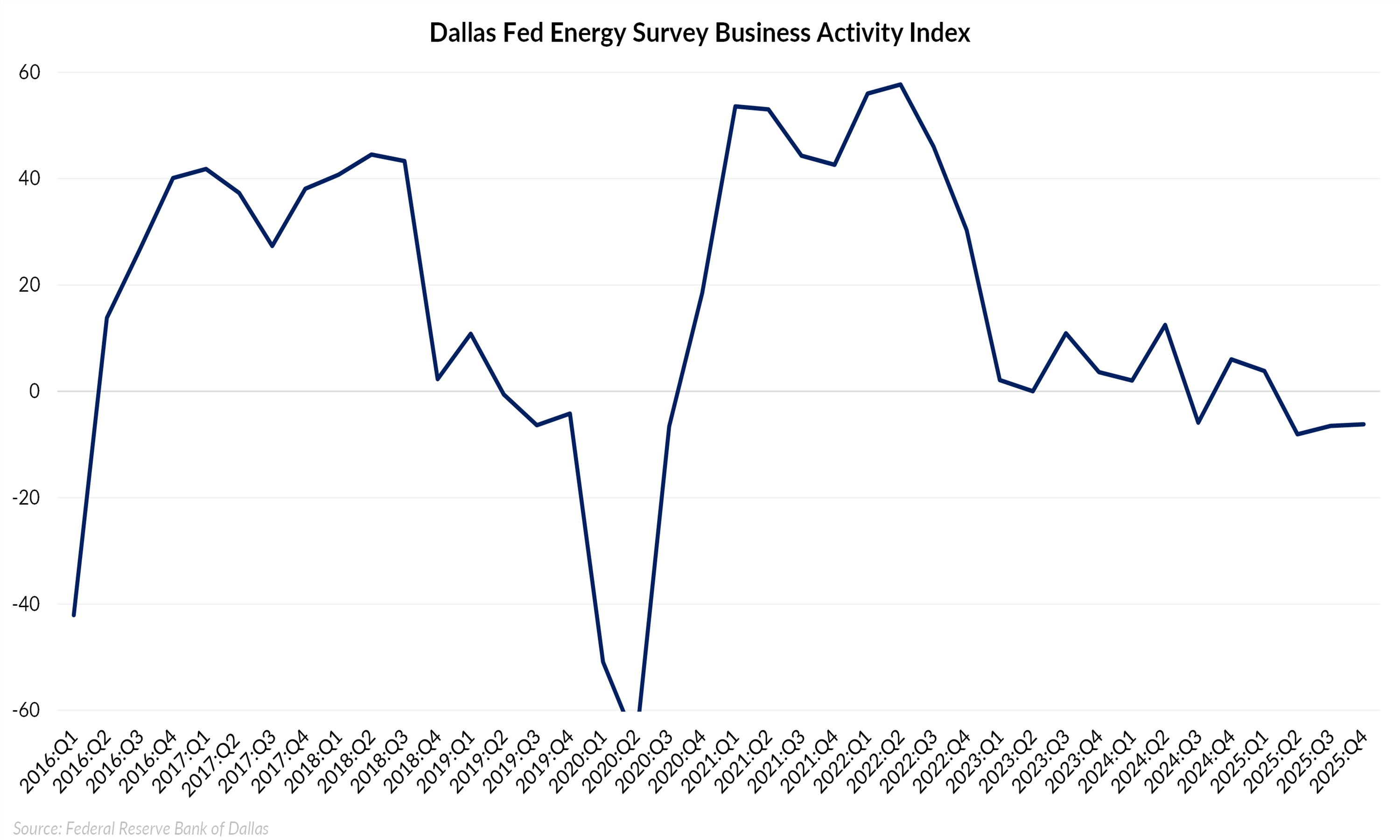 Oil and gas operators across Texas, northern Louisiana, and southern New Mexico ended 2025 on a cautious footing as activity remained in contraction and confidence failed to improve meaningfully. The latest Energy Survey from the Federal Reserve Bank of Dallas suggests the industry has stabilized at a lower level of activity but continues to operate defensively heading into 2026.