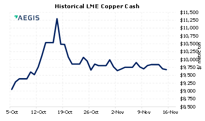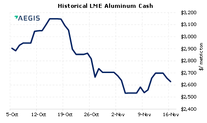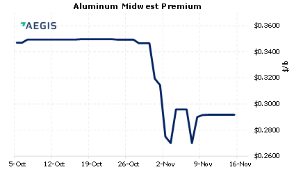 The LME Aluminum 3M contract was down nearly 2% yesterday. The US Dollar Index and metals prices normally trade inversely to each other. The USD Index has rallied in November and is now at a 16-month high. Yesterday President Biden signed the $1 trillion infrastructure bill into law. This could be supportive to metals prices once projects begin. (11/16/2021) |