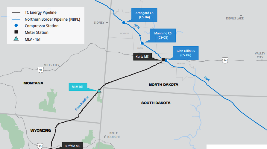 Bison Xpress - TC Energy is working to increase capacity on the Northern Border Pipeline (NBPL) system by replacing three existing compression stations. The increased capacity of 300 MMcf/d will be leased by Wyoming Interstate Company as part of its Bakken Xpress Project. In addition, the project would allow bidirectional natural gas flow on TC's Bison pipeline.
